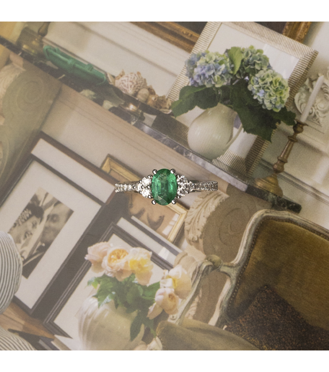 "LUNA" GOLD RING WITH DIAMONDS AND EMERALD