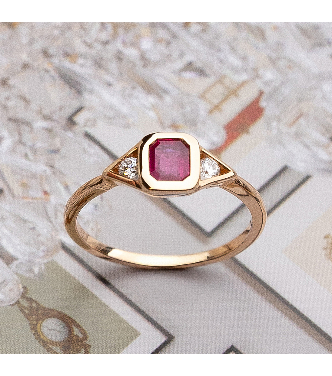 ALONSA” SIGNET RING WITH RUBY AND DIAMONDS