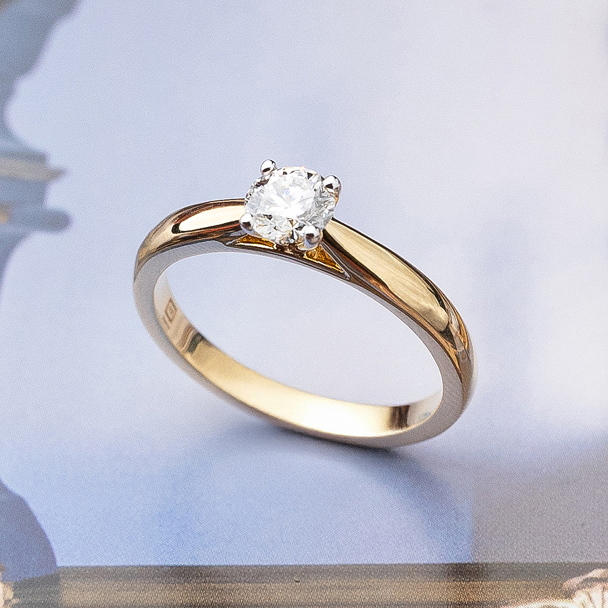 ARANTXA” SOLITAIRE RING IN YELLOW GOLD WITH DIAMONDS