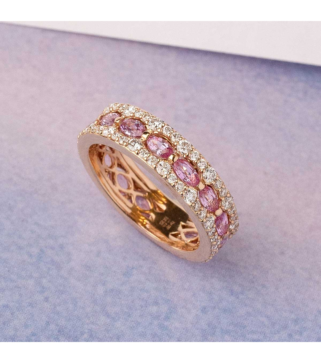 Ring ‘Lilia’ in 18K rose gold with 0.93 carats of round-cut diamonds and 1,35 carats of marquise-cut pink sapphires. A unique, modern piece with an elegance that does not go unnoticed.