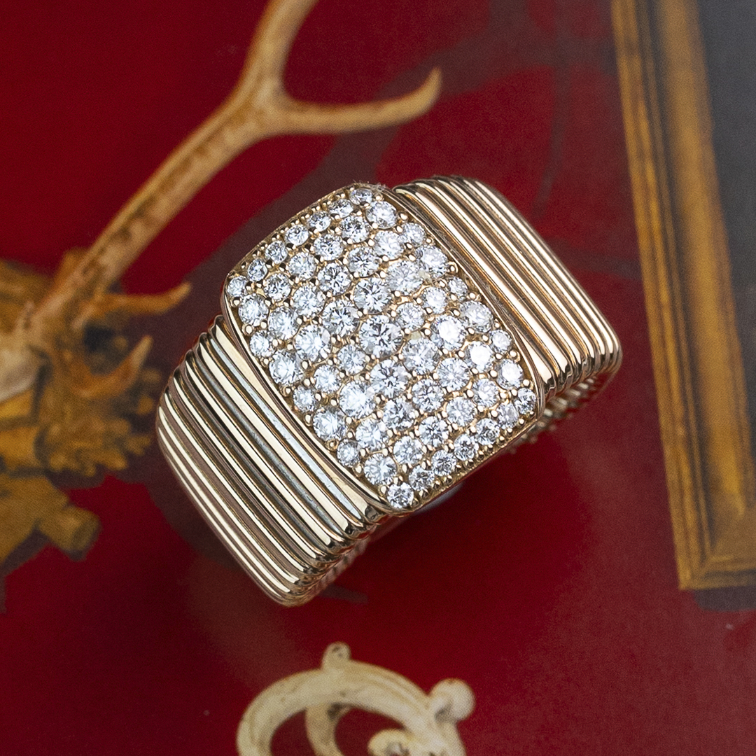 Tubogas "Geles" ring in 18kt rose gold with pavé diamonds. A symbol of elegance and refinement.