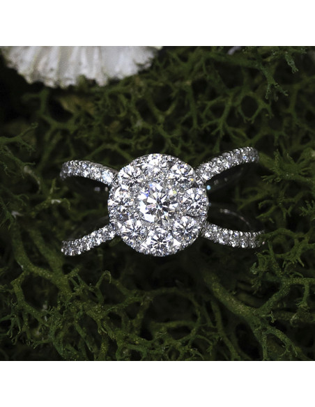 Immerse yourself in a sea of elegance with our white gold engagement ring. Inspired by timeless beauty, its design combines the delicacy of a halo of brilliant-cut diamonds with the sophistication of white gold. Each carefully selected diamond reflects the light with an intensity that captivates. This ring is not just a piece of jewellery, it is a promise of eternal love, a symbol of a unique and special commitment. Ideal for women looking for an engagement ring that represents them and makes them shine on every occasion.