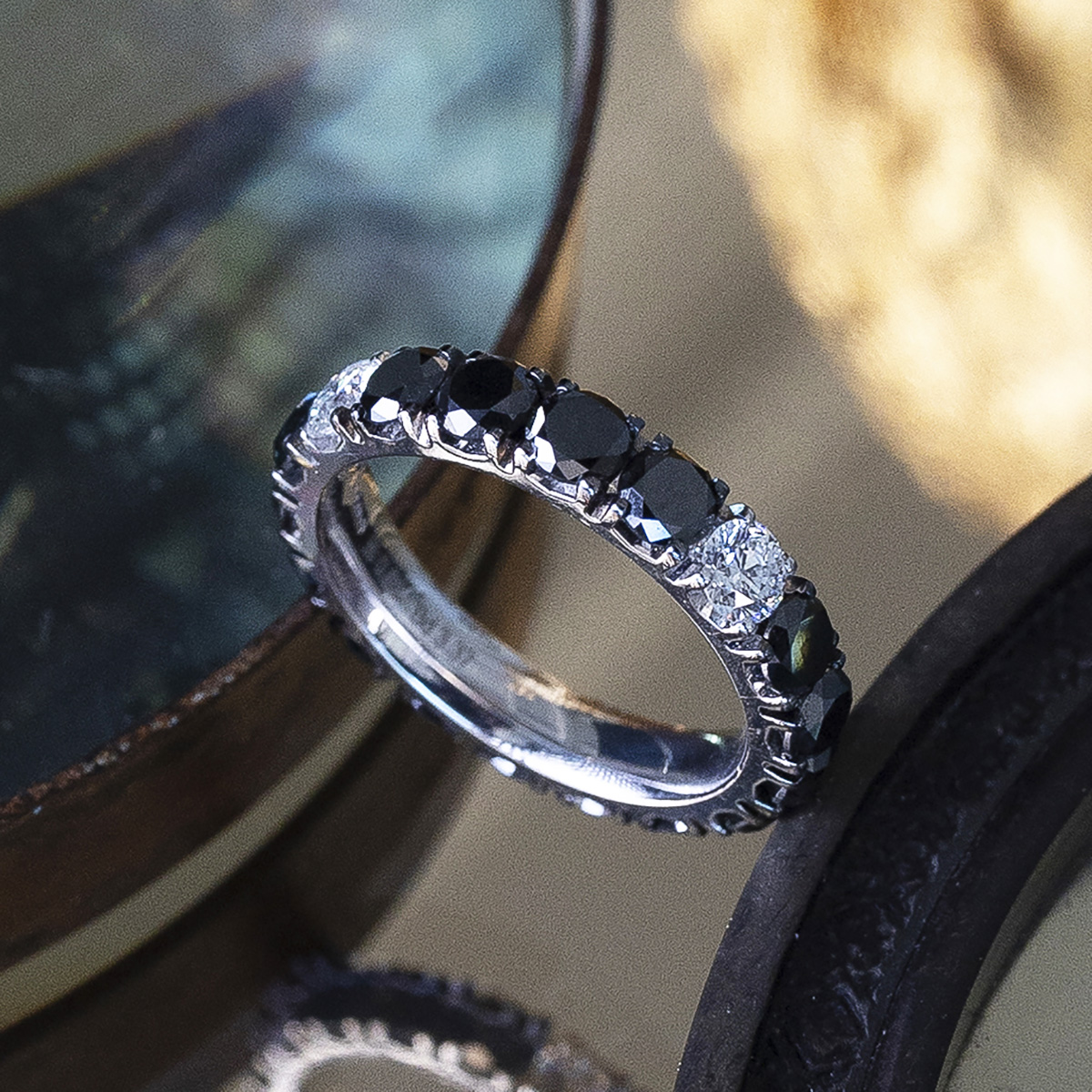 Loulou’ full wedding band ring in white gold with round-cut diamonds (0.58 cts.) and round-cut black diamonds (3.37 cts.). Eternal and sophisticated elegance.
