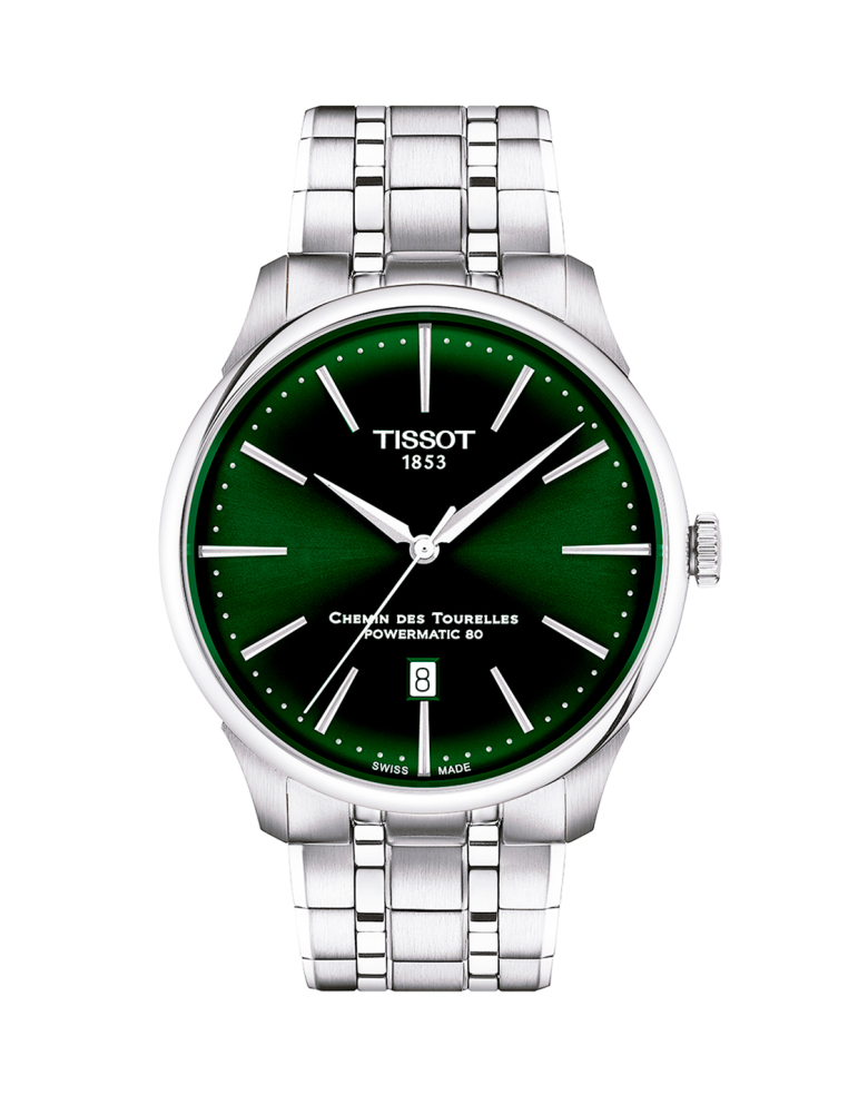 Close your eyes and think of a purely Swiss watch and you will see the Chemin des Tourelles. Named after the street that leads to Tissot's home in the Swiss mountains, it is the Tissot icon: round, classic, mechanical, timeless. Now updated and refined, this edition has a gently domed sapphire crystal that sits atop a soft sunray dial with simple, elegant baton hour-markers, each faceted to catch the light in a discreet yet sophisticated way. And beneath it is the Nivachron Powermatic 80, a state-of-the-art automatic mechanical movement with an 80-hour power reserve and high antimagnetism. A watch for all times.