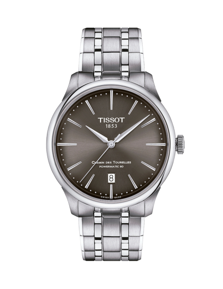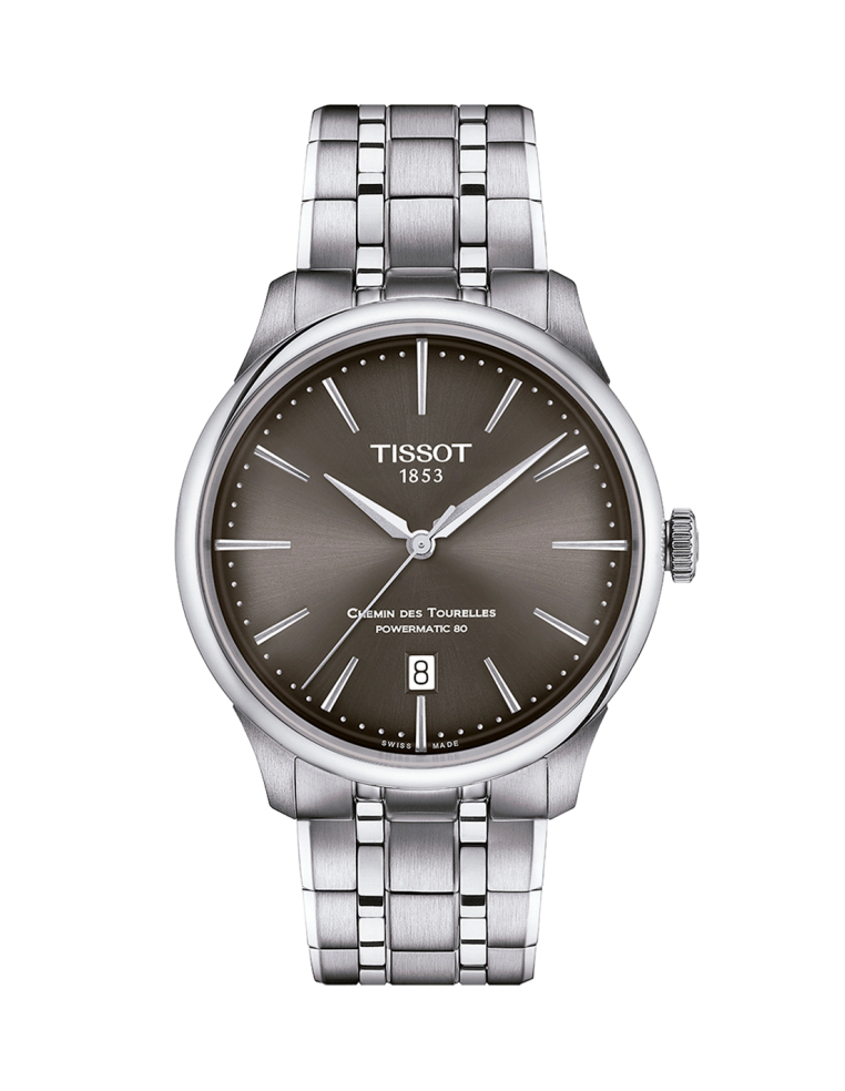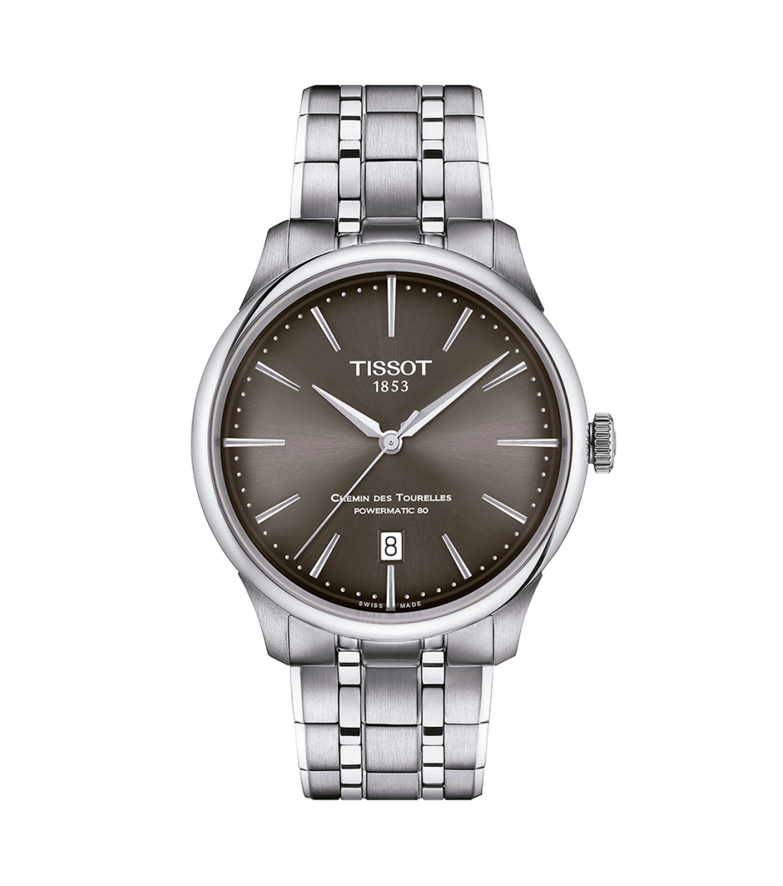 Close your eyes and think of a purely Swiss watch and you will see the Chemin des Tourelles. Named after the street that leads to Tissot's home in the Swiss mountains, it is the Tissot icon: round, classic, mechanical, timeless. Now updated and refined, this edition has a gently domed sapphire crystal that sits atop a soft sunray dial with simple, elegant baton hour-markers, each faceted to catch the light in an understated yet sophisticated way. And beneath it is the Nivachron Powermatic 80, a state-of-the-art automatic mechanical movement with an 80-hour power reserve and high antimagnetism. A watch for all times.