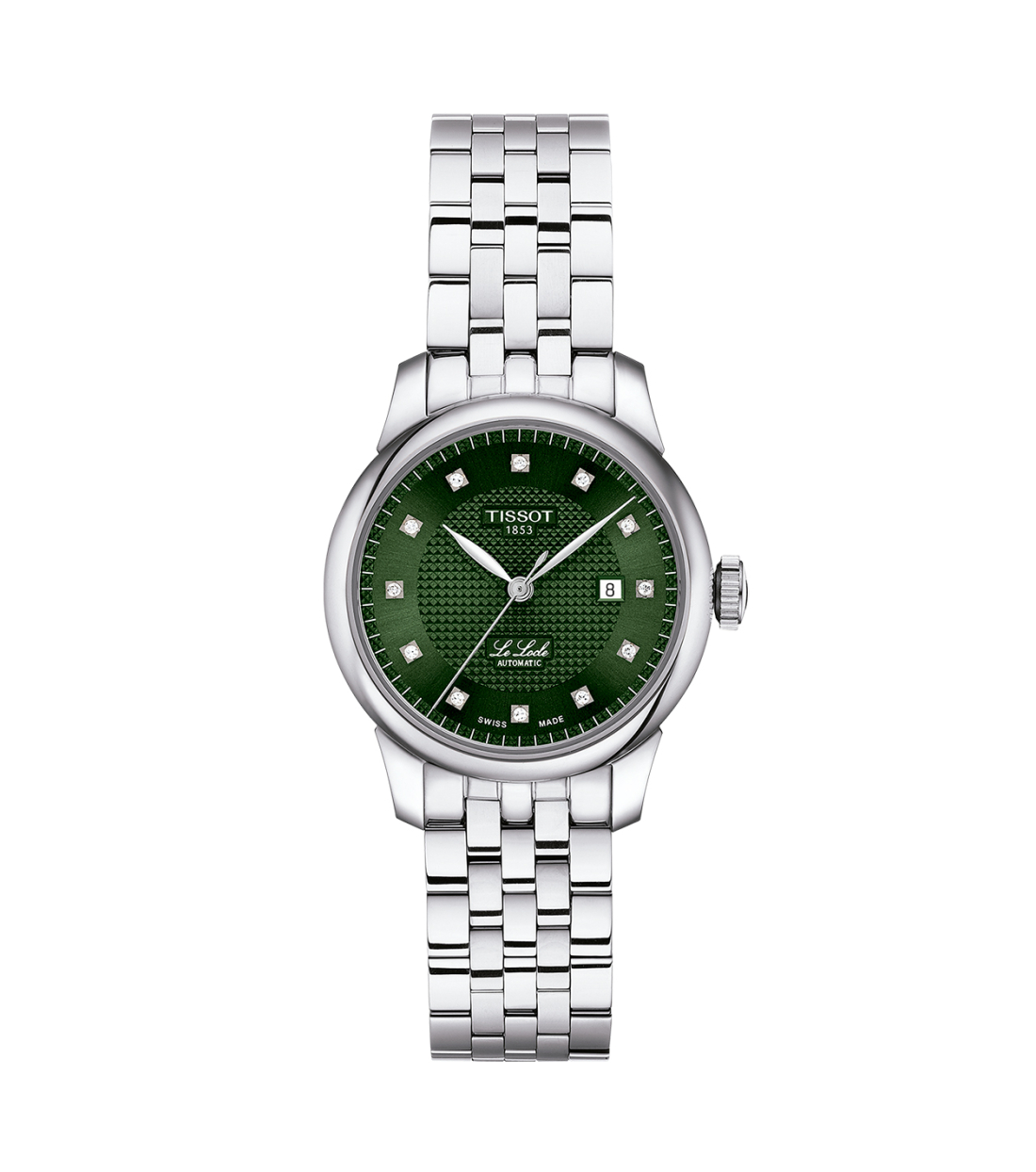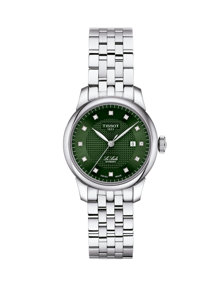 The Le Locle collection first appeared in 2003 to commemorate the 150th anniversary of the brand. This watch is a piece of history, embodying the spirit of innovation that has defined Tissot for more than a century. This model features a green dial, replaces the Roman indexes with eight sparkling diamonds and is equipped with interchangeable quick-release bracelets. All watches feature the beautiful “guilloché” clous de Paris dial in the shape of small pyramids, a detail that really makes the difference. The interplay of polished and brushed finishes of the links creates a captivating visual rhythm, catching the light with every movement. This timepiece embodies the charm of Swiss heritage, and the name “Le Locle”, inscribed in italics on the dial, adds a sophisticated touch, inviting you to celebrate your roots. The latest model incorporates the cutting-edge Nivachron Spring Balance technology, which significantly mitigates the effects of magnetic fields, while being resistant to shocks, aging and temperature variations. This model includes a date function and a transparent caseback that reveals the fascinating mechanics at work.
