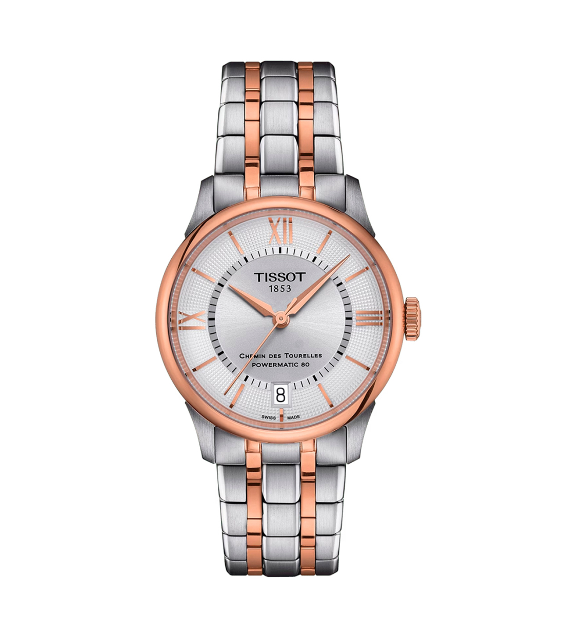 Close your eyes and think of a purely Swiss watch and you will see the Chemin des Tourelles. Named after the street that leads to Tissot's home in the Swiss mountains, it is the Tissot icon: round, classic, mechanical, timeless. Now updated and refined, this edition has a gently domed sapphire crystal that sits atop a soft sunray dial with simple, elegant baton hour-markers, each faceted to catch the light in a discreet yet sophisticated way. And beneath it is the Nivachron Powermatic 80, a state-of-the-art automatic mechanical movement with an 80-hour power reserve and high antimagnetism. A watch for all times.