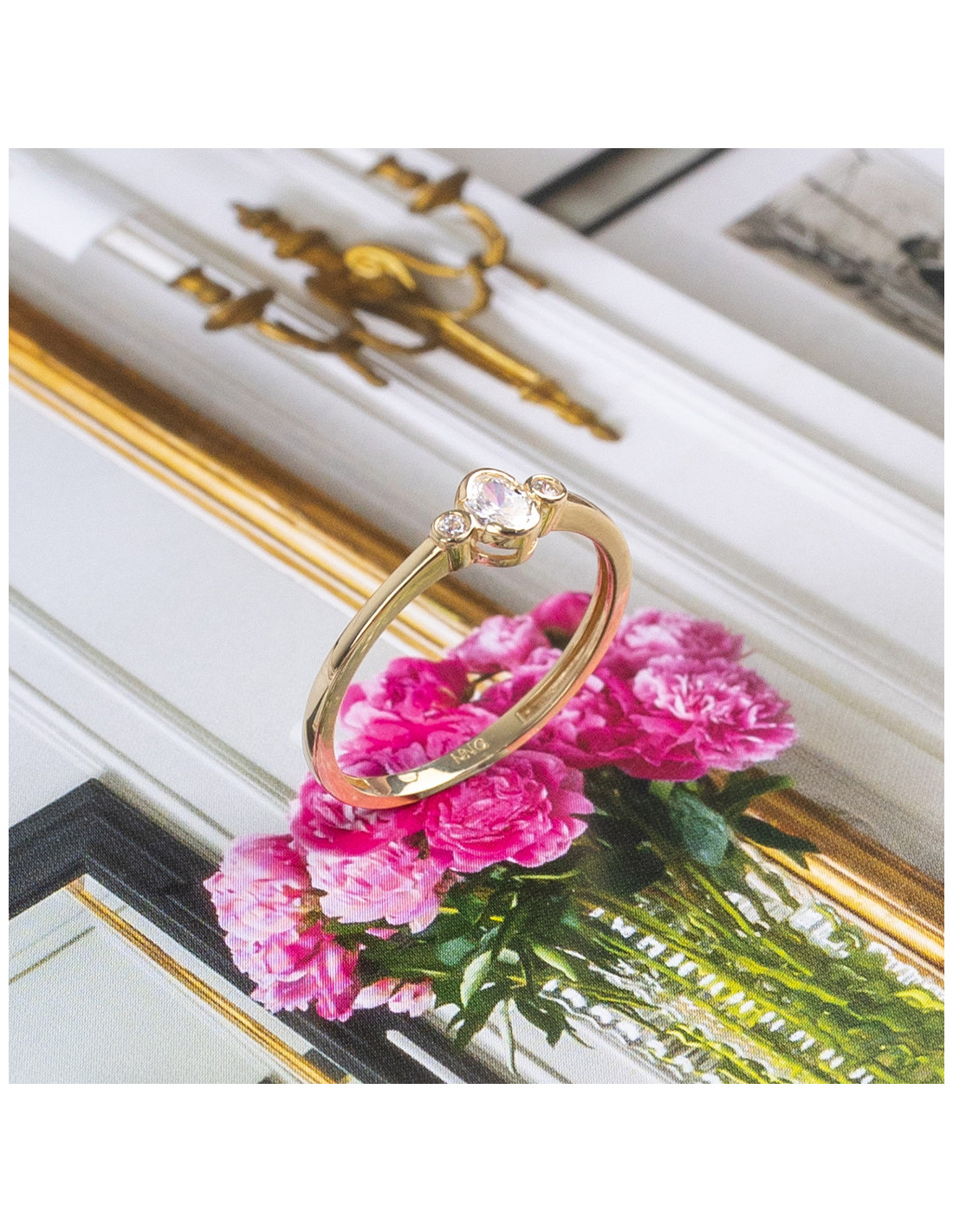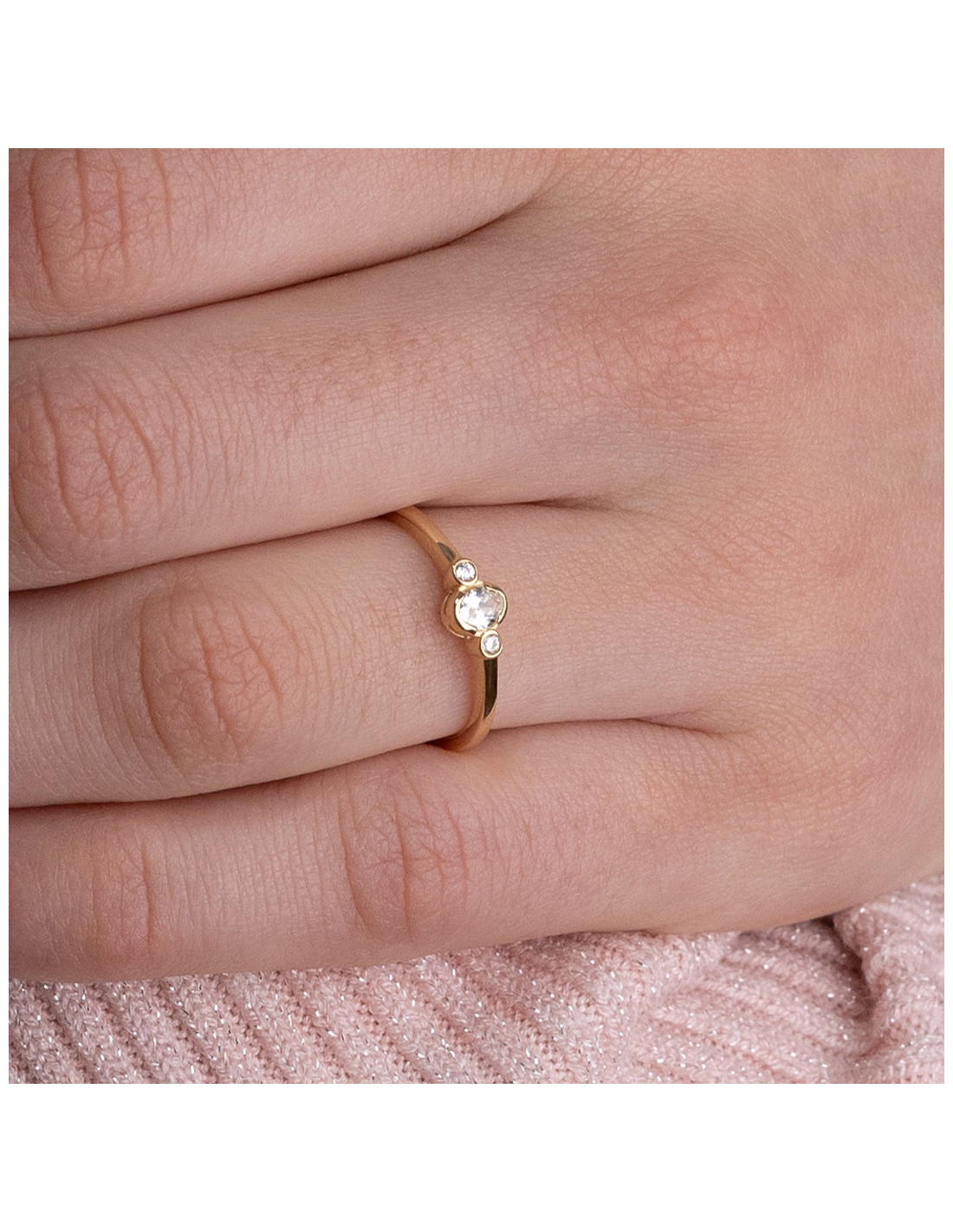 Anillo "Zaida" de oro amarillo de 18Kt con circonitas. Elegancia para tu día a día.
