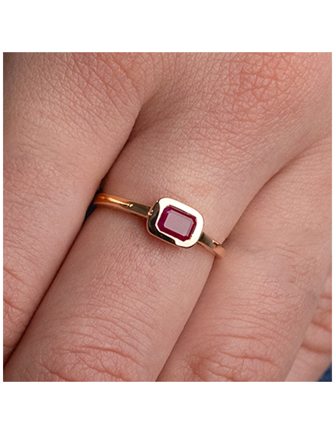 Anillo "Beloved" de oro rosa de 18Kt con rubí. Un toque de sofisticación para tu estilo diario.