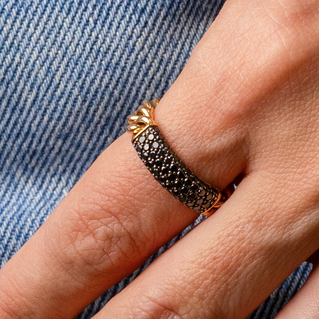Anillo "Stealth" de oro rosa de 18Kt con diamantes negros. Un aura de misterio y sofisticación.