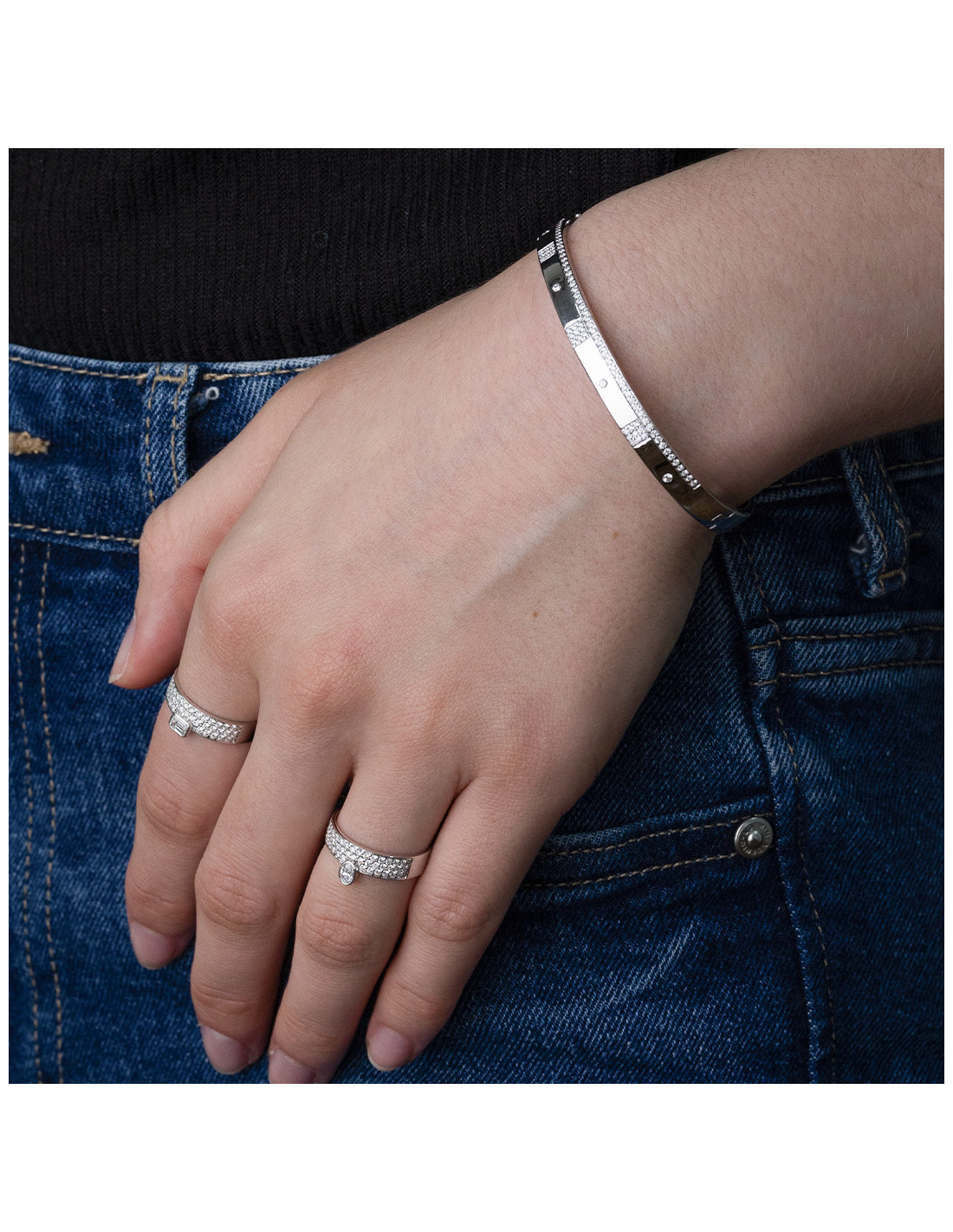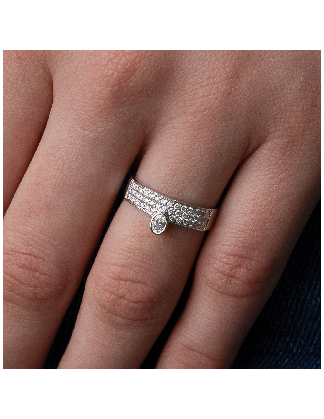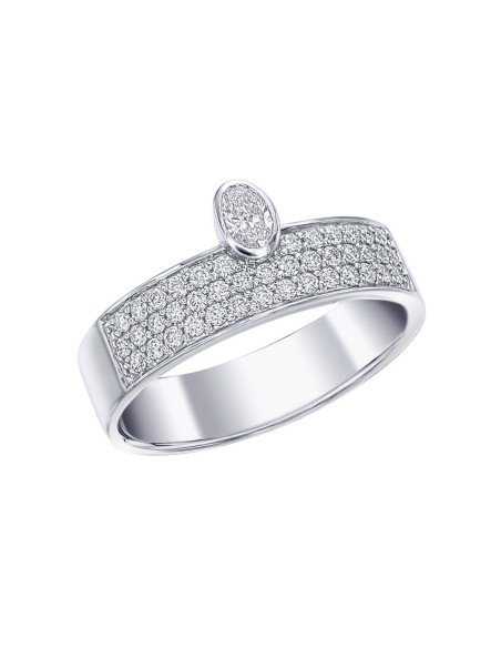Este anillo de oro blanco con pavé de diamantes es la definición de la elegancia atemporal. Su diseño minimalista y sofisticado lo convierte en el accesorio perfecto para cualquier ocasión, desde un evento formal hasta un día casual.