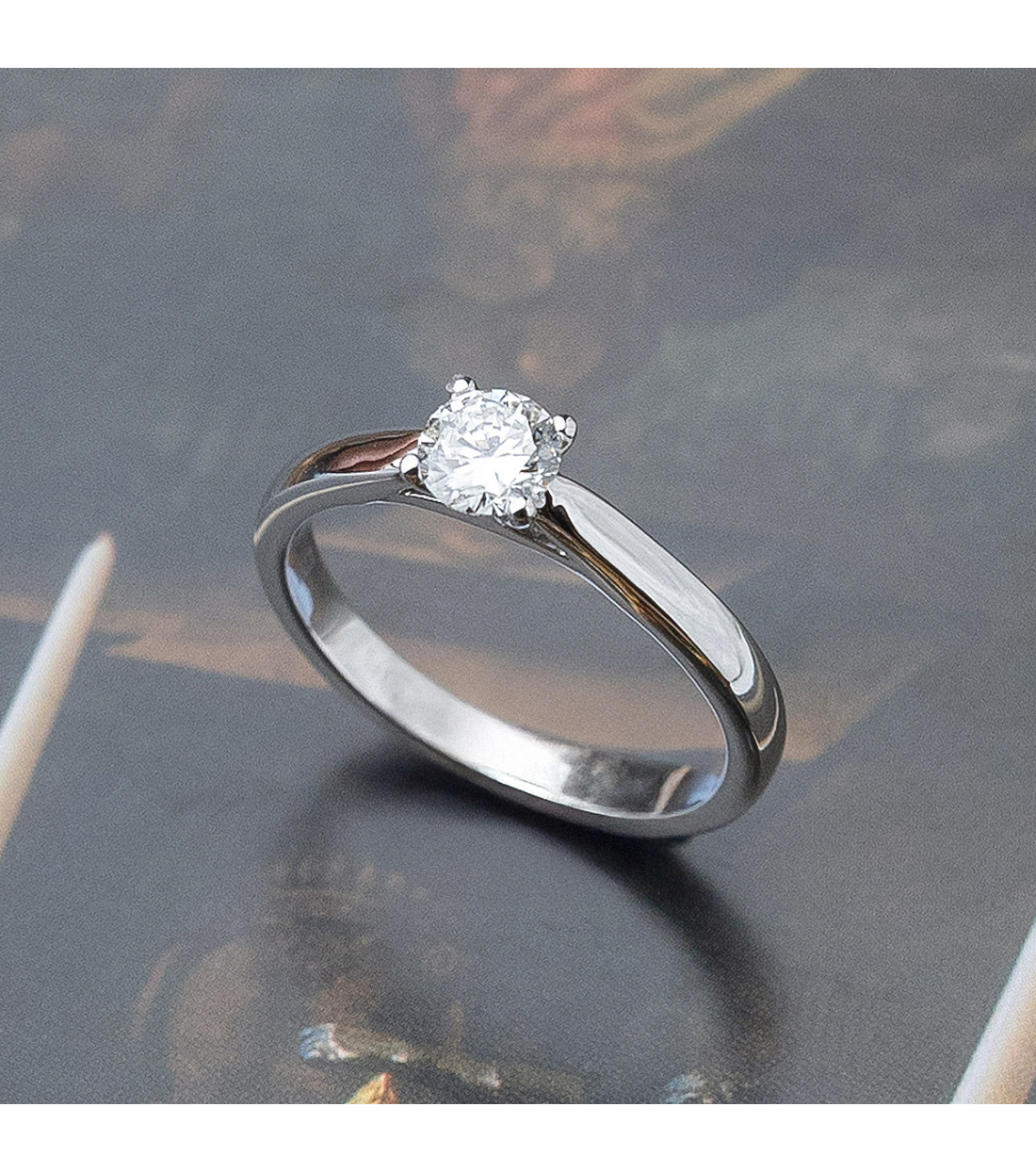 Anillo solitario "Luisa" de oro blanco de 18Kt. con diamante talla brillante 0,40 Cts. ¡El anillo perfecto para decir "sí"!.