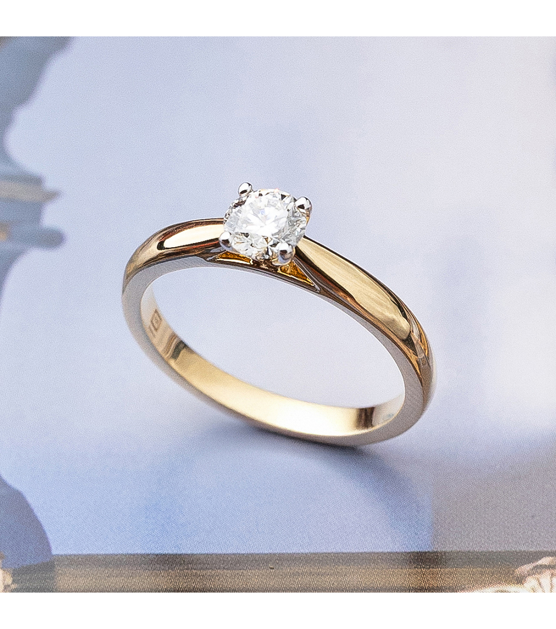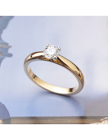 Anillo solitario "Arantxa" de oro amarillo de 18Kt. con diamante talla brillante 0,46 Cts. ¡El anillo perfecto para decir "sí"!
