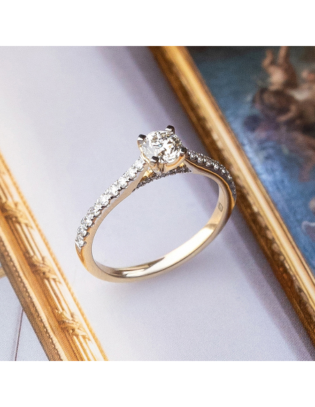 Anillo "Elena" de oro amarillo con diamantes talla brillante (0,65 Cts.). Un símbolo de amor eterno y elegancia, perfecto para sellar vuestro compromiso.