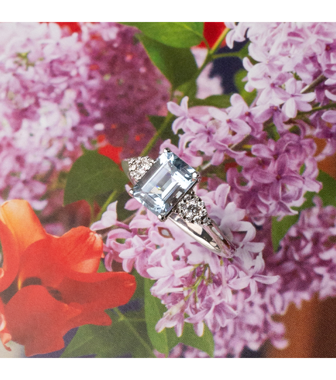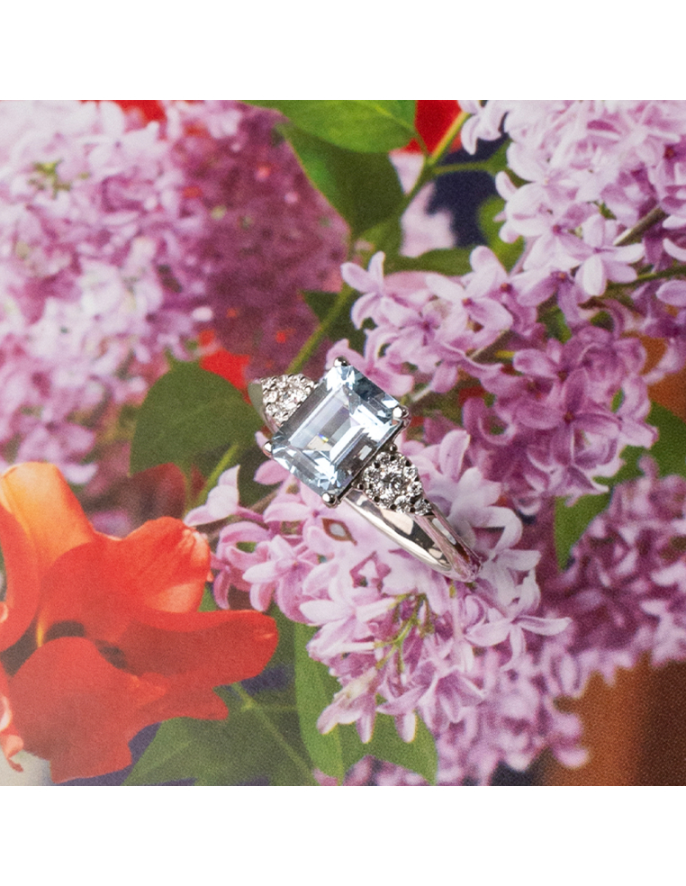 ANILLO "KELLY" DE ORO BLANCO CON DIAMANTES Y AGUAMARINA