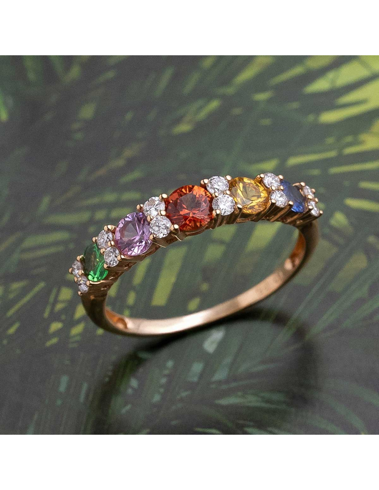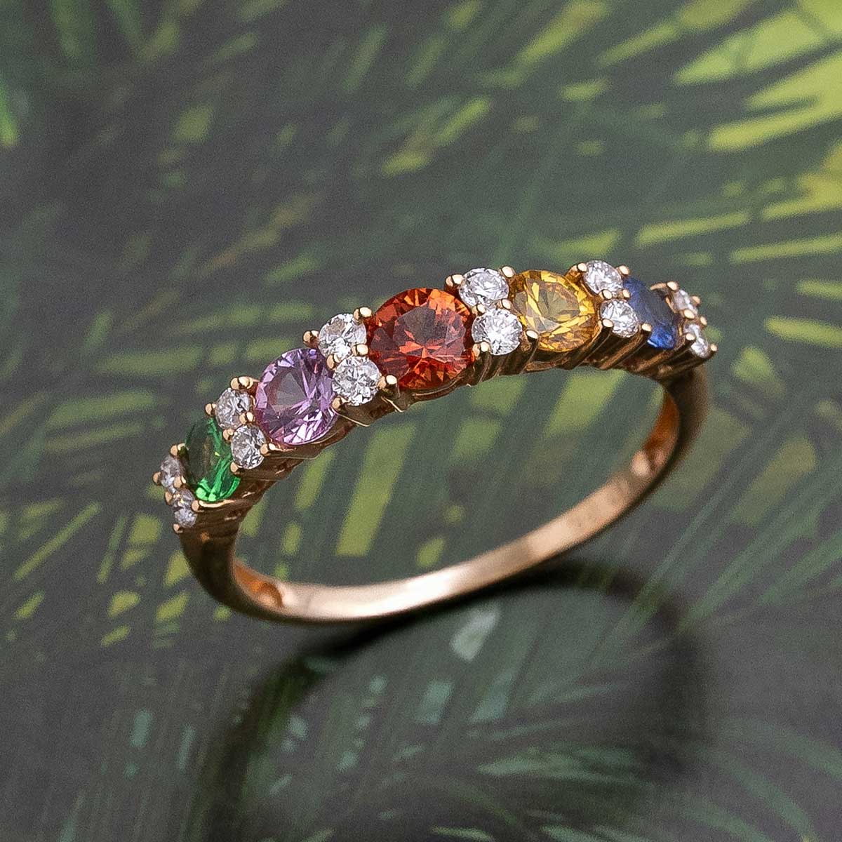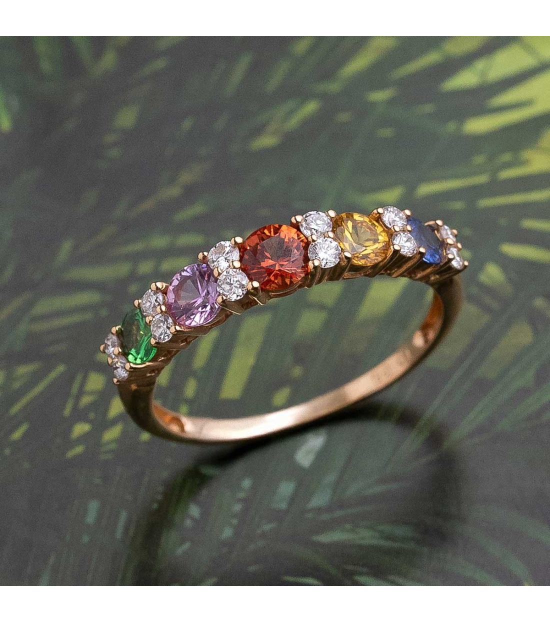 Anillo "Mayase" de oro rosa de 18Kt con zafiros multicolor talla brillante 0,95Cts y diamantes talla brillante 0,21Cts. Una joya que celebra la belleza en todas sus formas.