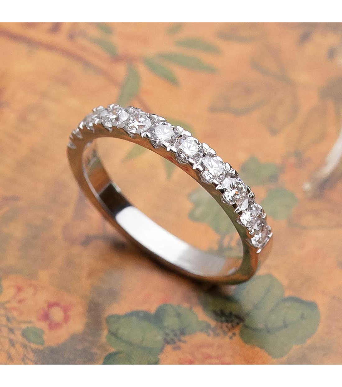 Anillo "Saori" media alianza de oro blanco con diamantes talla brillante 0,61 Cts. Una joya versátil y elegante que complementará a la perfección cualquier atuendo.