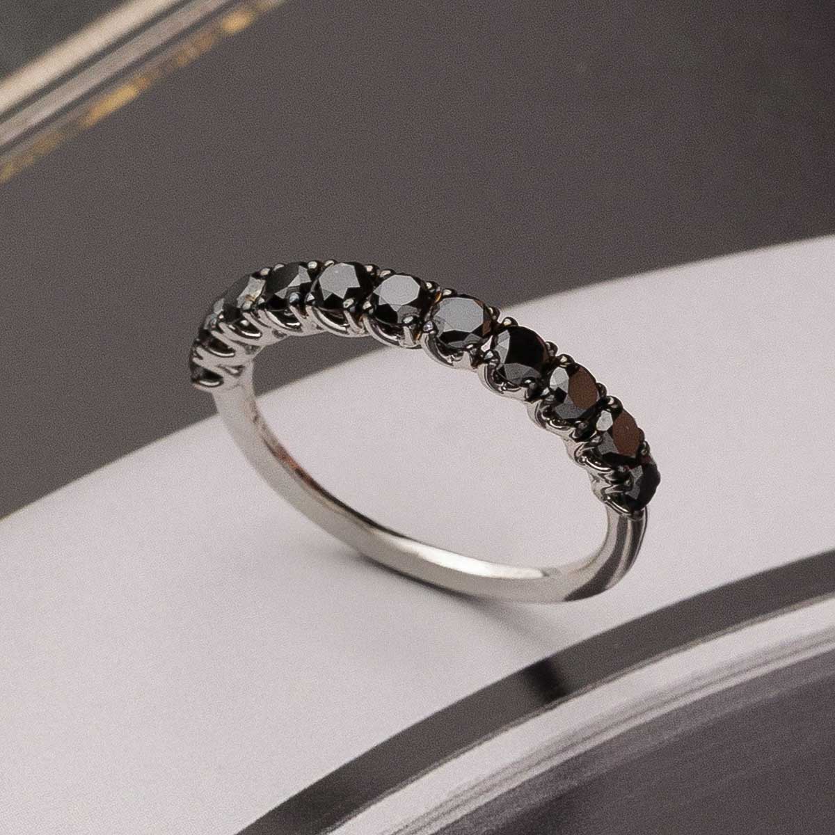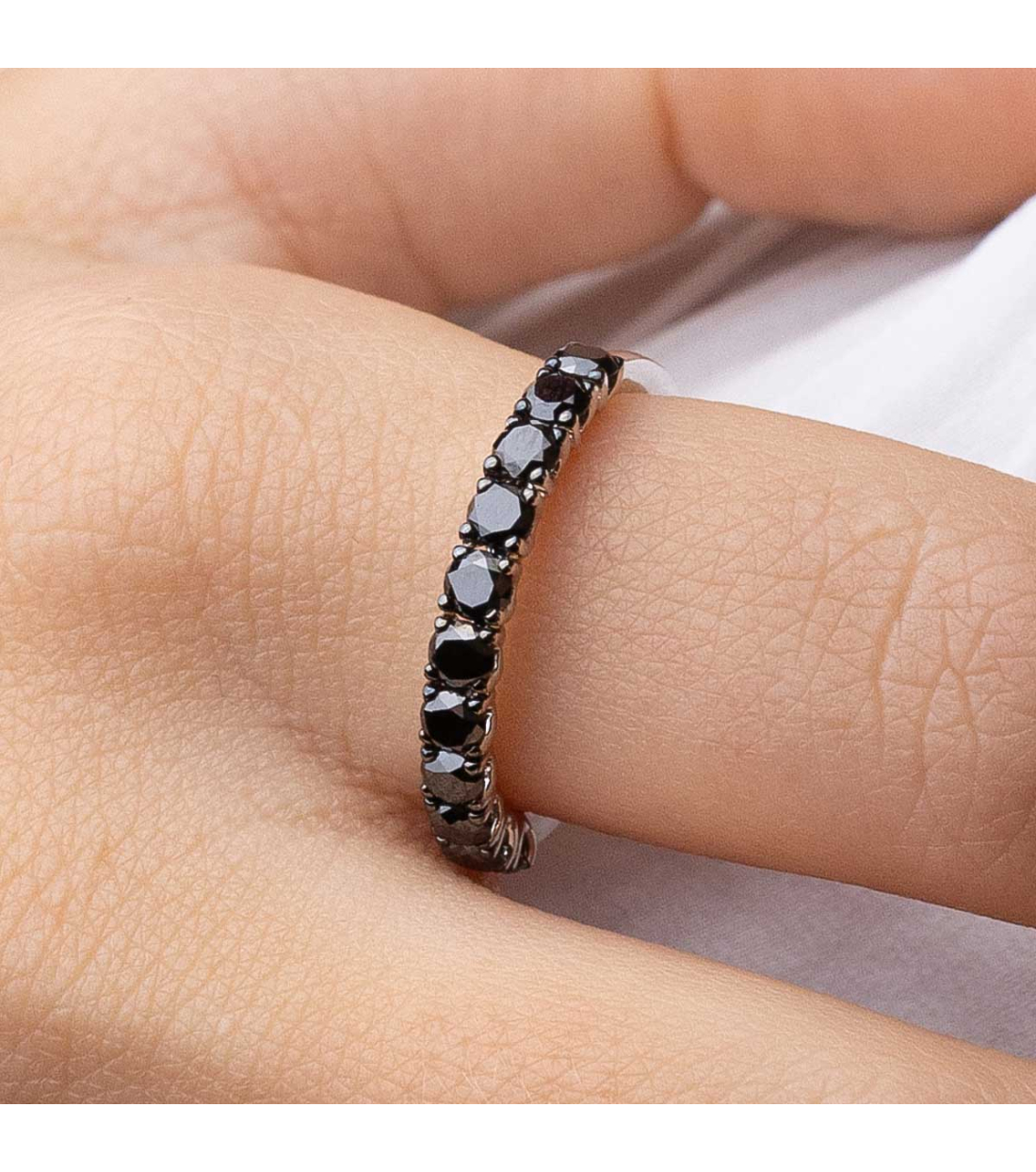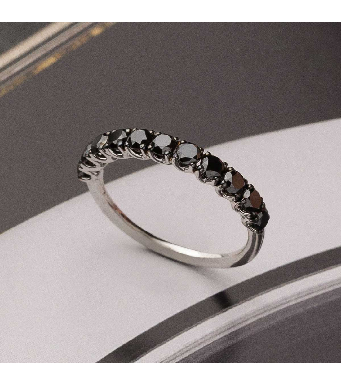 Anillo "Alana" media alianza de oro blanco con diamantes negros talla brillante 1,00 Cts. Diferente, potente y profundamente elegante.