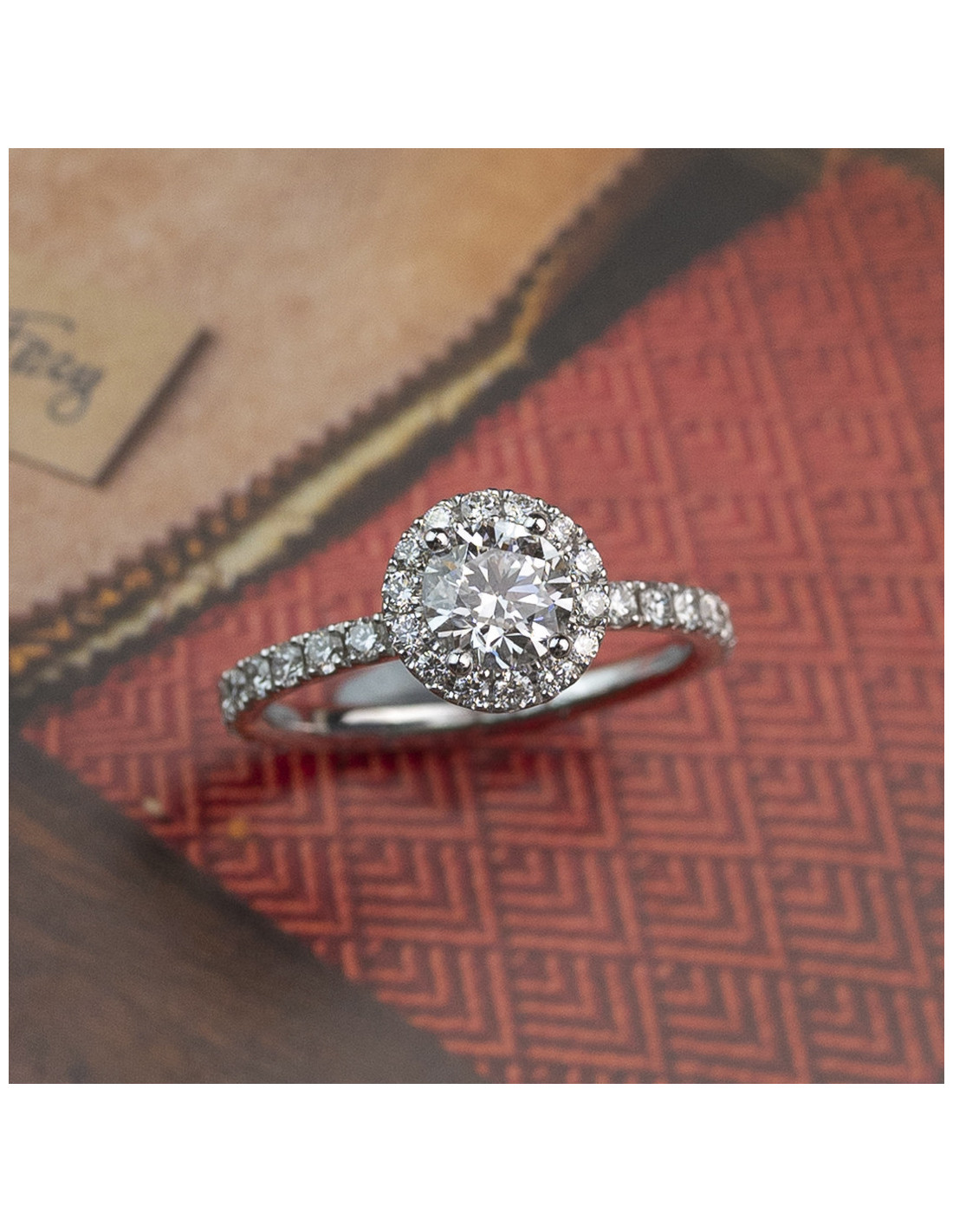 Anillo "Alicia" de oro blanco de 18 Kt. con diamante central y bisel en diamantes. Eterna elegancia.