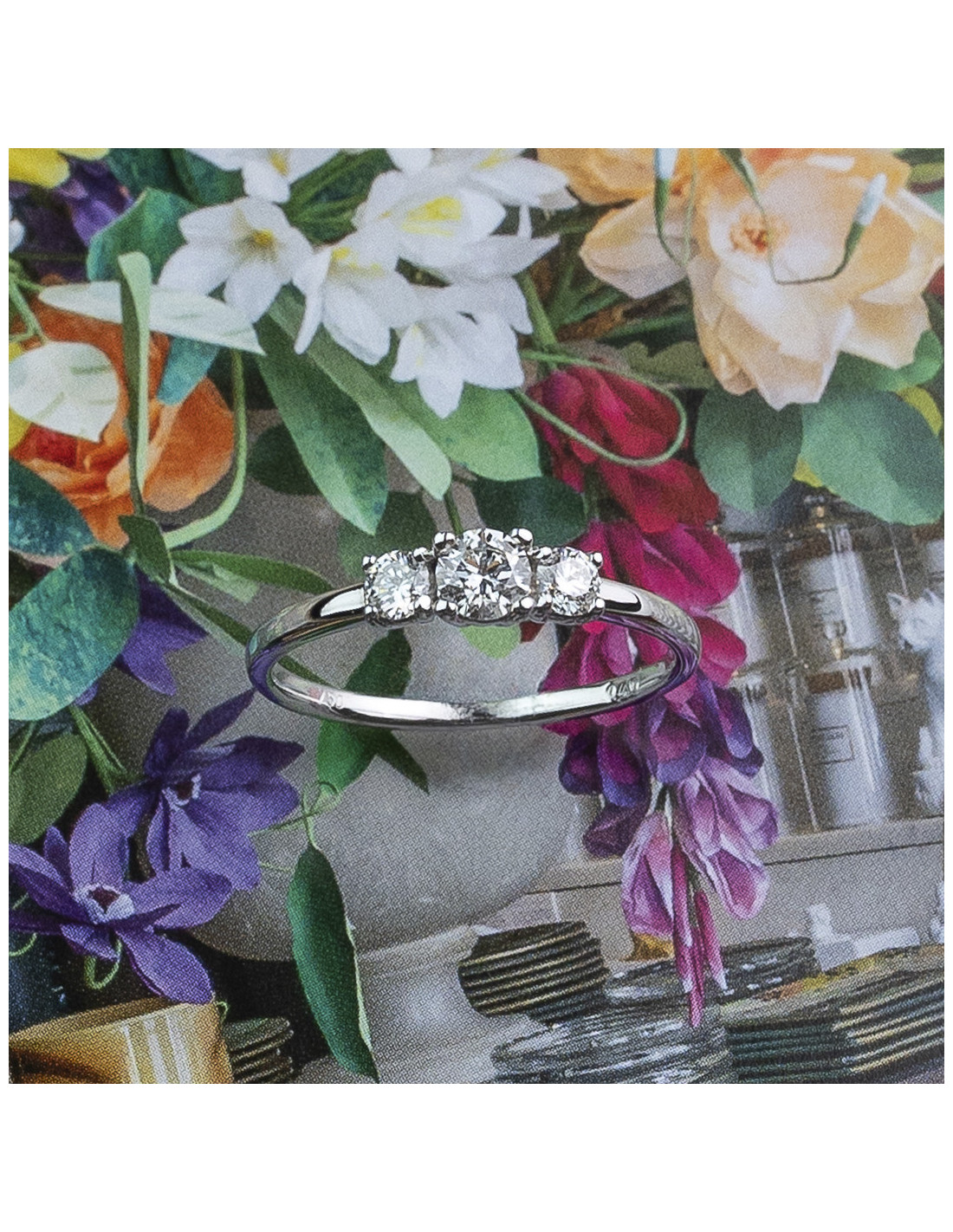 Anillo "Martina" tresillo de oro blanco con diamantes. Una Declaración de Amor Eterno.