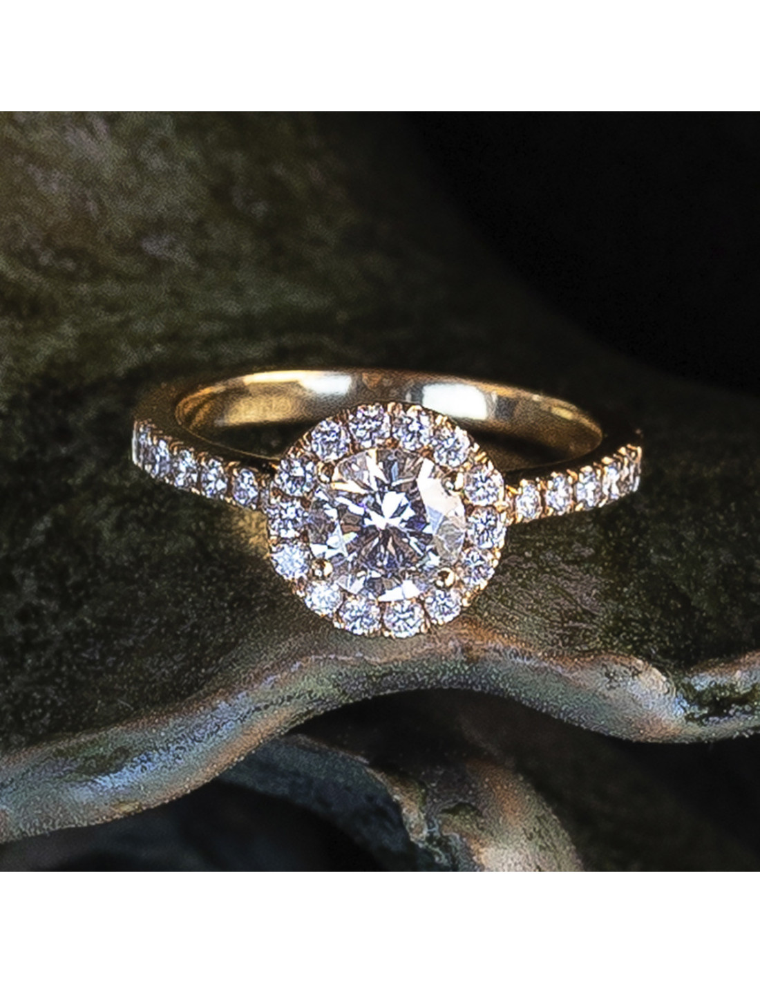 Anillo "Arlette" de oro rosa con diamantes talla brillante. Un diseño atemporal y elegante para sellar vuestro amor.
