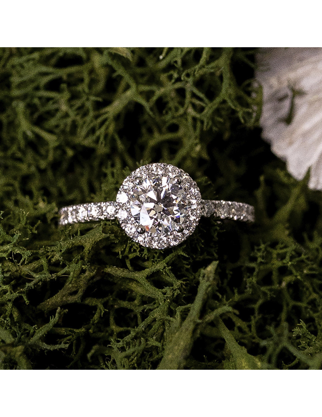 ANILLO "BARBARA" DE ORO BLANCO CON HALO DE DIAMANTES