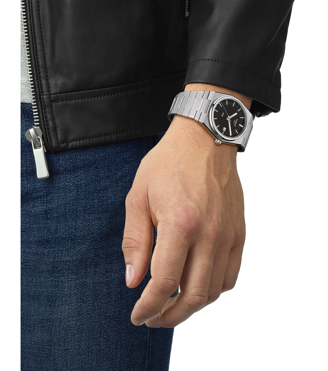 Tissot reedita un diseño icónico de finales de la década de 1970, con caja y brazalete integrados. La caja Tissot PRX 40 205 mide 40 mm de diámetro y se caracteriza por su forma de barril. Acomoda un bisel delgado y redondeado. El Tissot PRX 40 205 Quartz se viste con una esfera soleil en color negro o azul, junto con índices y agujas luminiscentes, o una esfera plateada y satinada que está acompañada de índices y agujas en color oro rosa.