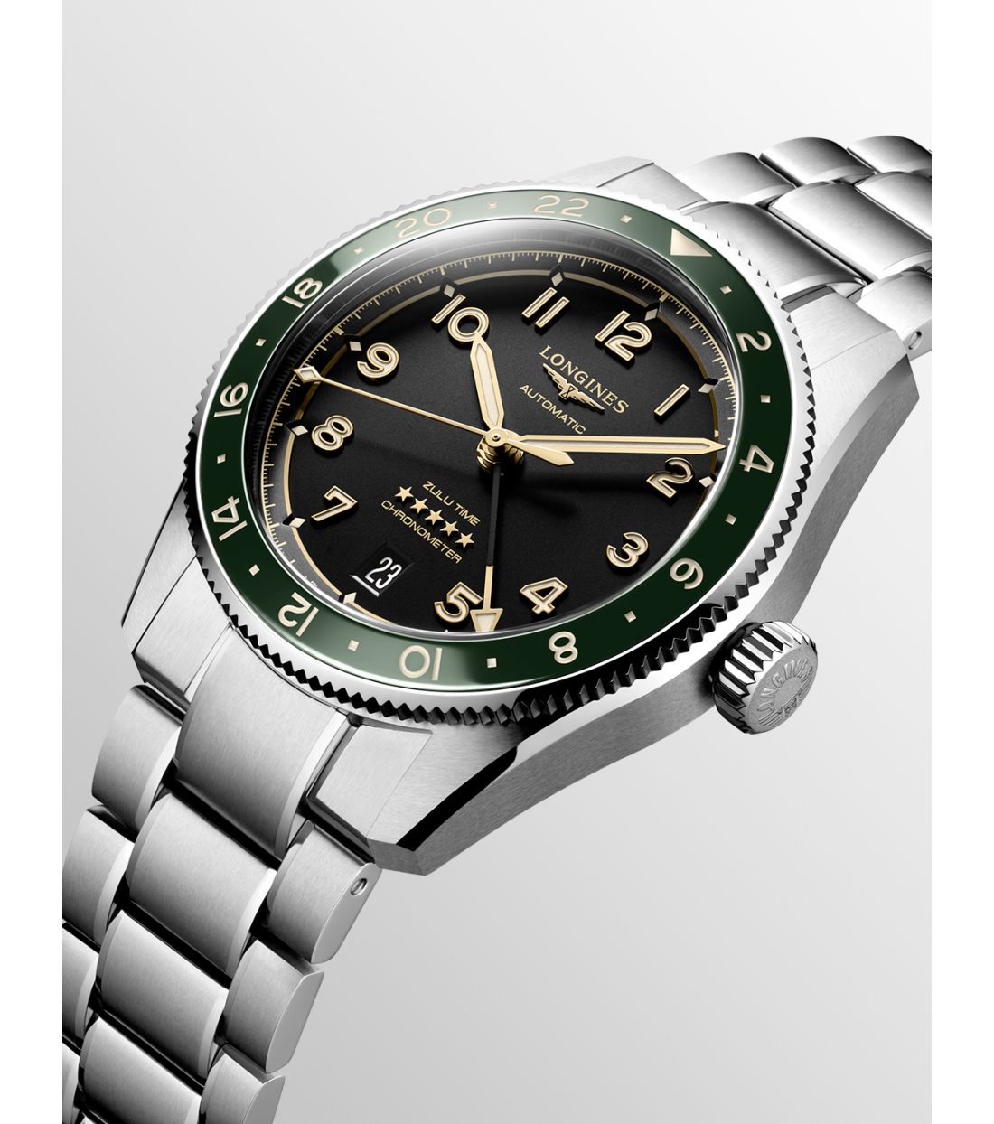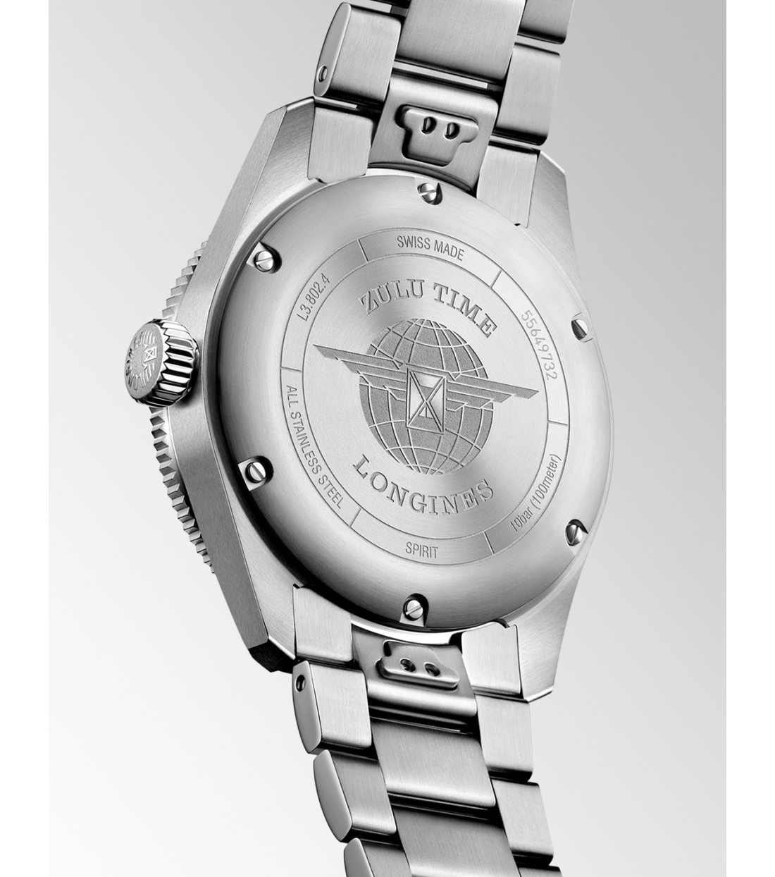 El LONGINES Spirit Zulu time encarna la experiencia centenaria de la marca en relojes con múltiples husos horarios. Sus orígenes y su nombre provienen del primer reloj de pulsera LONGINES de doble huso horario fabricado en 1925, que presentaba la bandera zulú en su esfera, en referencia a la letra "Z" que designa la hora universal para los aviadores. Estéticamente, el LONGINES Spirit Zulu Time destaca por su meticulosa ejecución y por el especial cuidado de los distintos detalles. Presenta un bisel giratorio bidireccional con incrustación de cerámica. Cada modelo está equipado con un exclusivo calibre LONGINES, con espiral de silicio, resistente a los campos magnéticos y con el certificado de cronómetro del COSC.