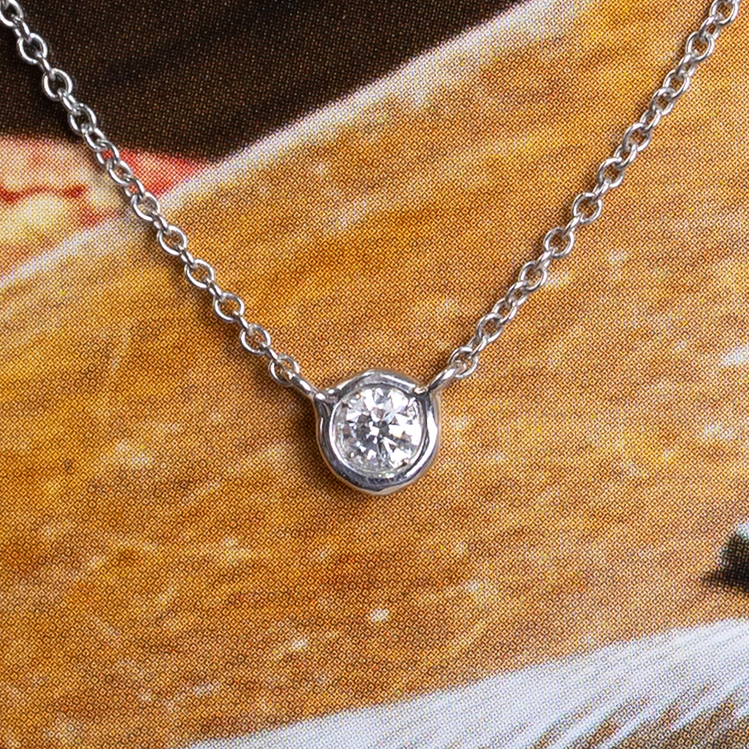 Collar "Amparo" de oro blanco de 18Kt. con diamante en chatón. Un universo de luz en tu cuello.