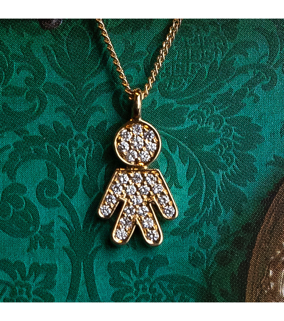 Collar "Jaron" cadena y niño de oro amarillo con diamantes. Elegancia Atemporal para Padres e Hijos.