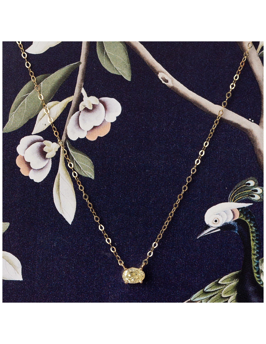 Sucumbe al encanto inigualable del Collar "Sofia", de oro con Diamante Fancy. Una pieza única y excepcional que captura la esencia de la elegancia.
