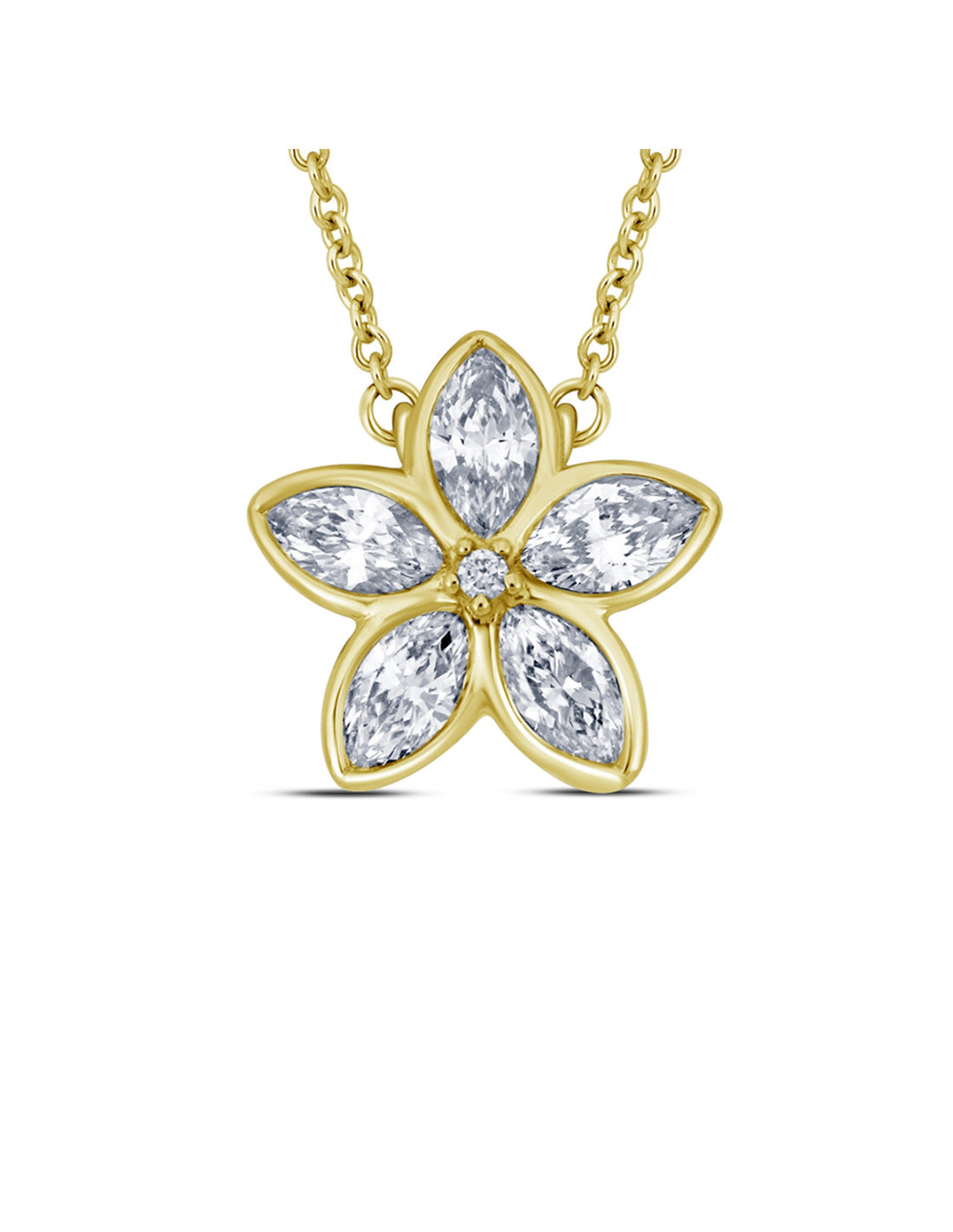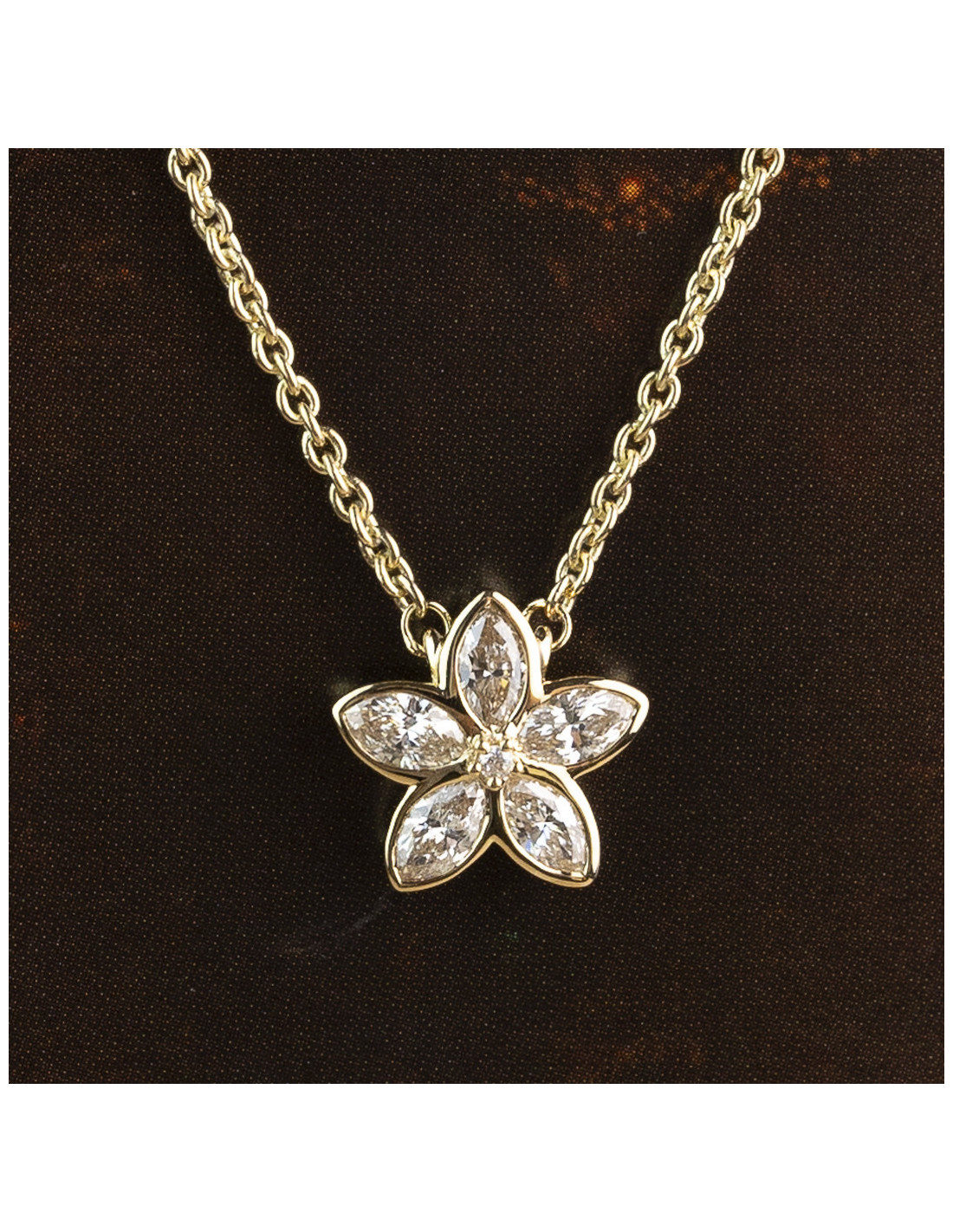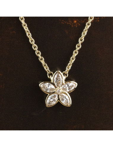Collar "Julia" de oro amarillo de 18 Kt. con flor de diamantes talla marquesa y talla brillante. Elegancia floral para una mujer radiante.