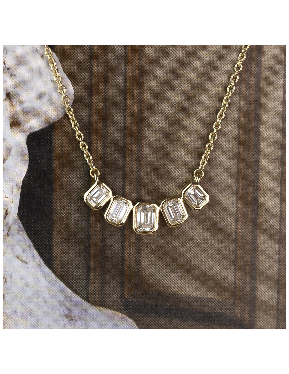 Collar "Diana" de oro amarillo de 16 quilates con diamantes talla esmeralda. Un regalo perfecto para mujeres extraordinarias.