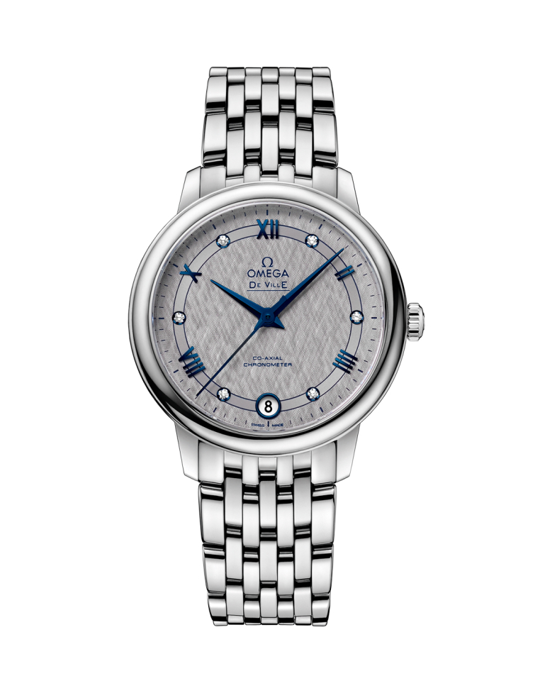 La caja de 32,7 mm es de acero noble y se presenta con un brazalete Prestige en acero noble pulido. El reloj incorpora el calibre 2500 Co-Axial.