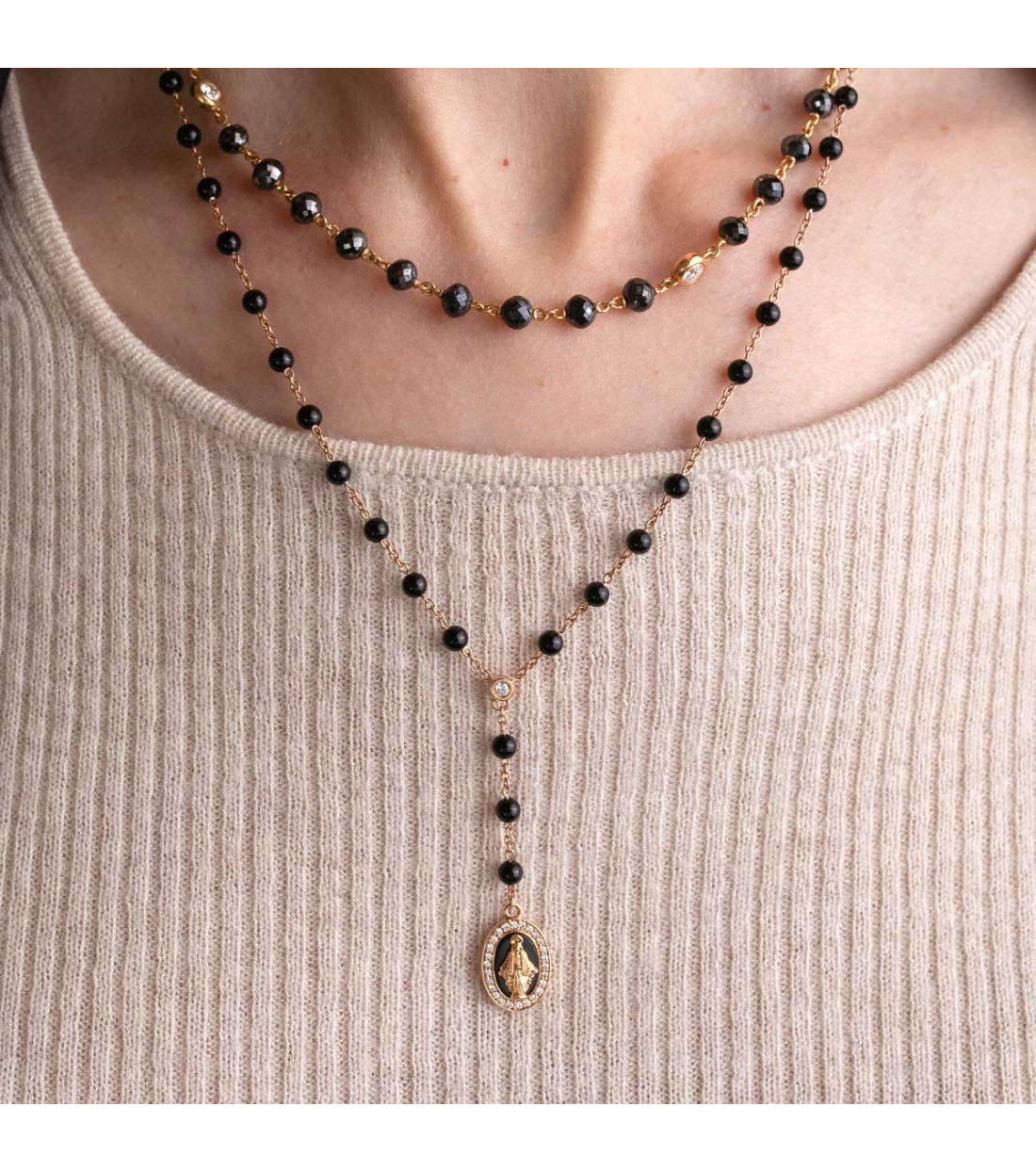 Compra este look de oro rosa y diamantes negros para mujer compuesto de dos collares que se complementan.