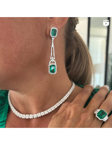 Compra este look de oro blanco y esmeraldas. Un conjunto maravilloso para lucir en tus eventos próximos