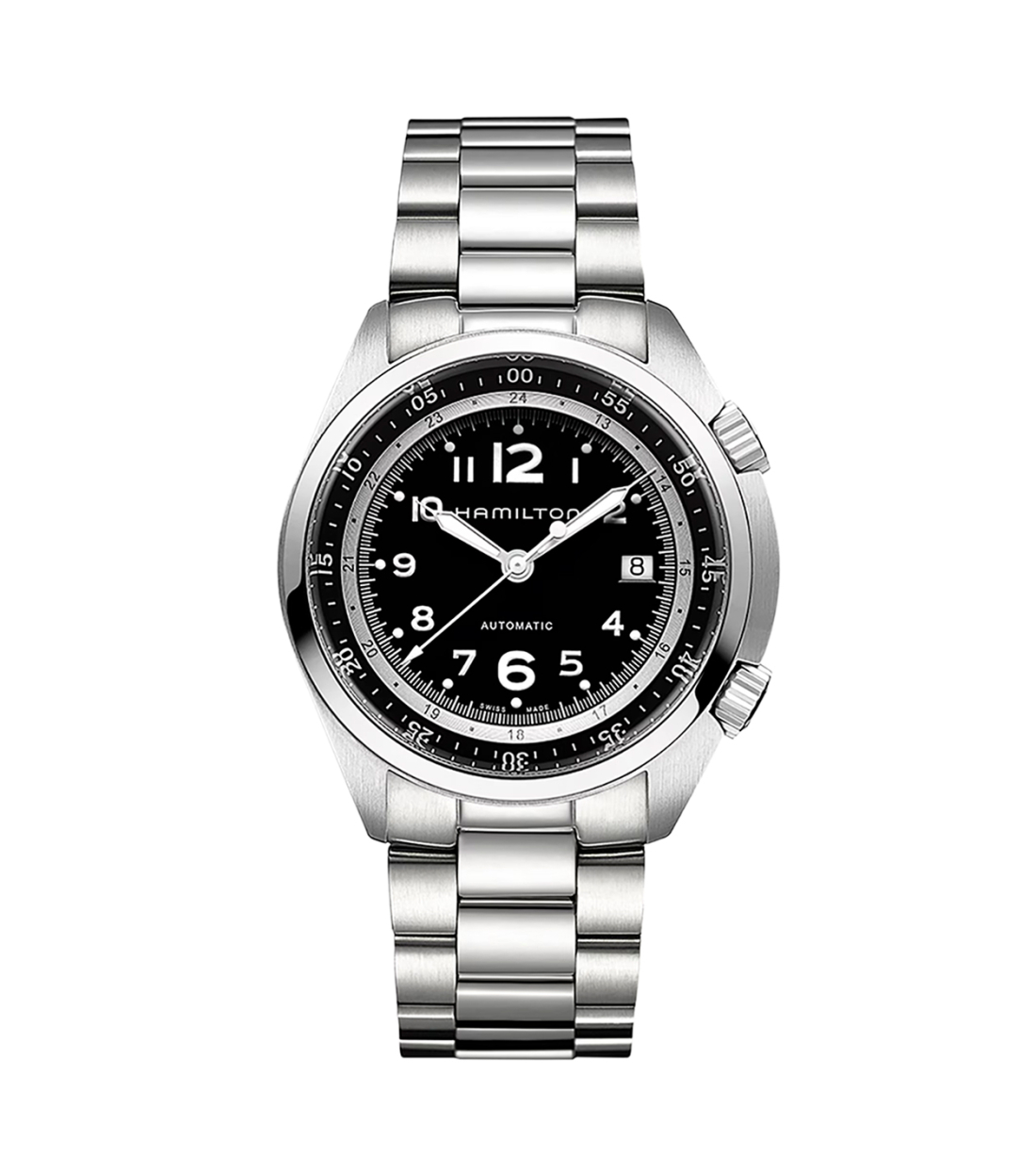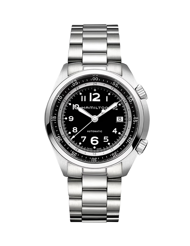 Aunque la gama Khaki Pilot Pioneer celebra el diseño de aviación militar de la década de 1970, se basa en la tecnología moderna para hacer que funcione. Con 80 horas de reserva de marcha en el calibre automático H-10, el Khaki Pilot Pioneer Auto se beneficia de la mejor autonomía. Ostenta el mejor protector de corona y pulsadores del mercado y viene con una opción de correa textil o piel o brazalete de metal.
