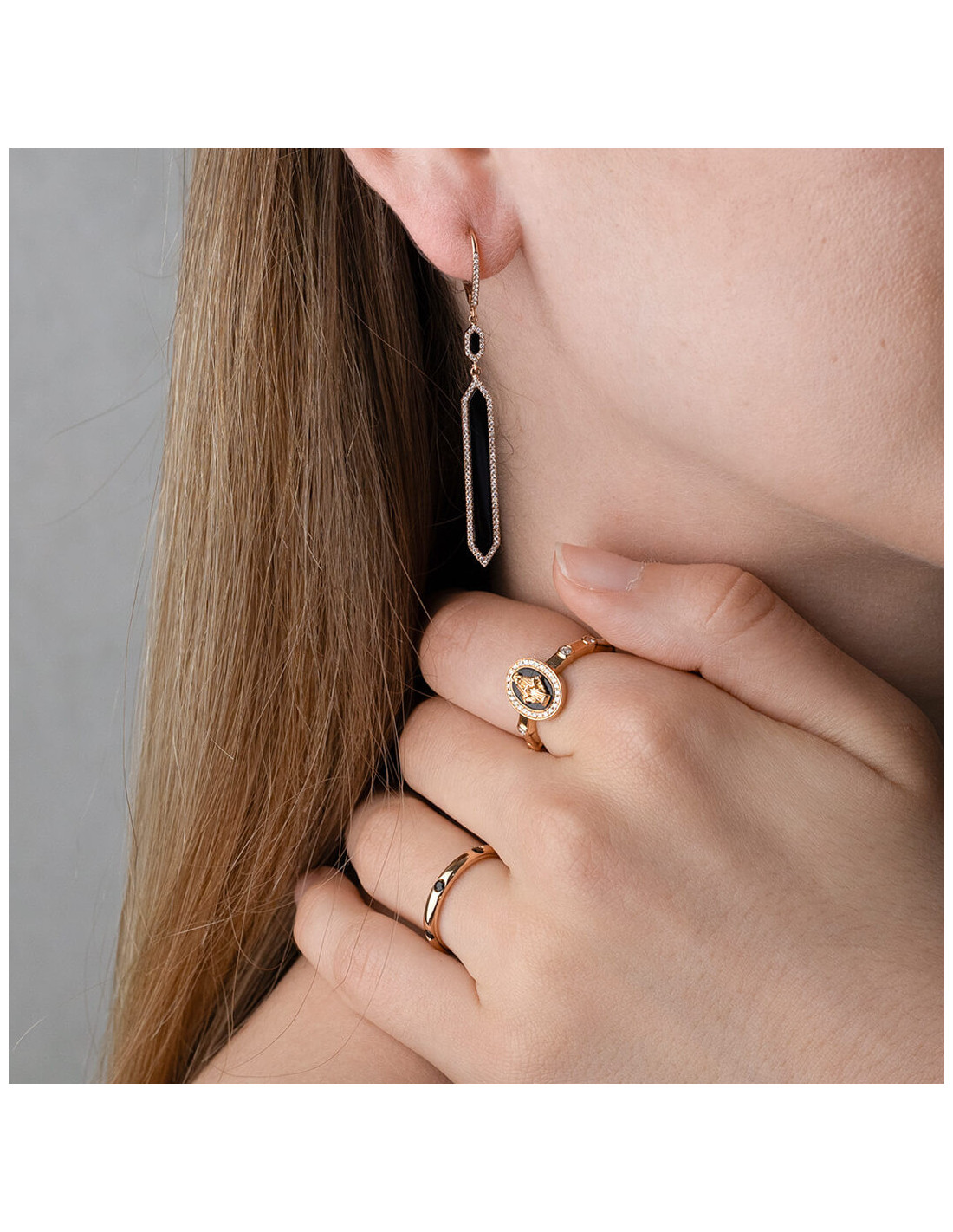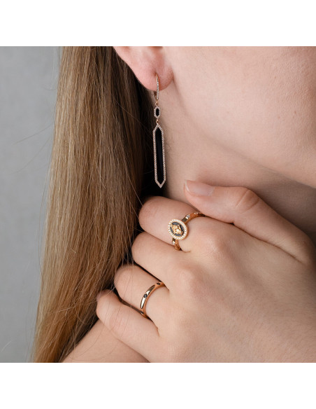 Compra este look de diamantes, onix y espinelas. Compuesto de dos anillos y pendientes. Un look sofisticado para cualquier ocasión