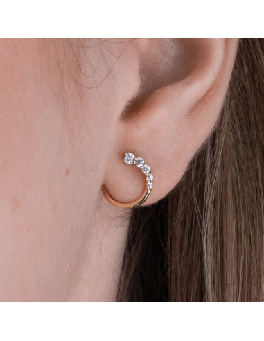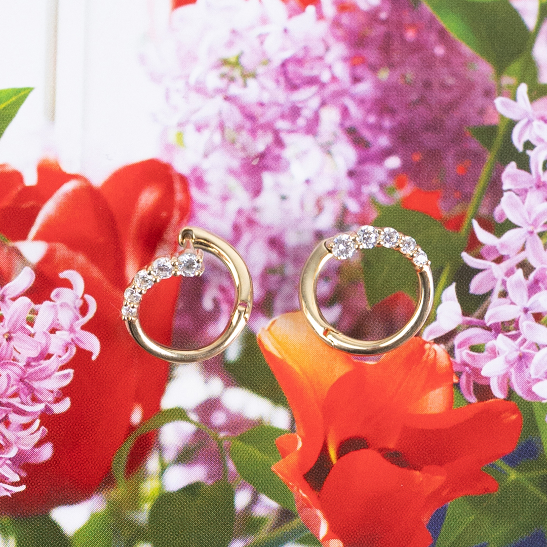 PENDIENTES MINI ARO "PRIMAVERA" DE ORO AMARILLO Y CIRCONITAS