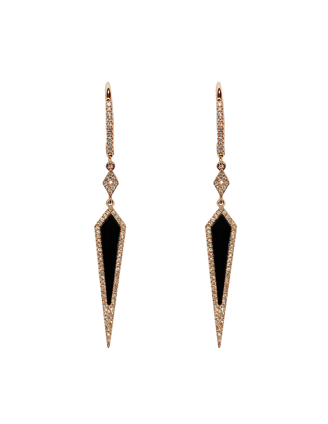 Pendientes "Enigma" de oro rosa con ónix y diamantes talla brillante. Un baile de luz y sofisticación.