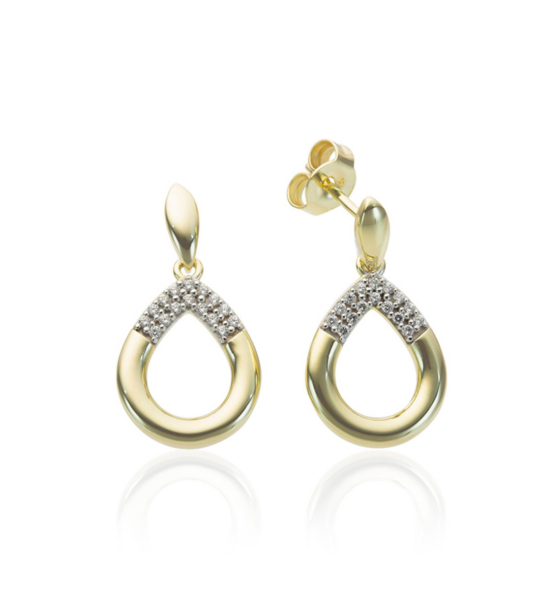 Pendientes "Lola" de oro amarillo con diamantes talla brillante (0,16 Cts.). Cierre a presión. ¡El regalo perfecto para cualquier ocasión!