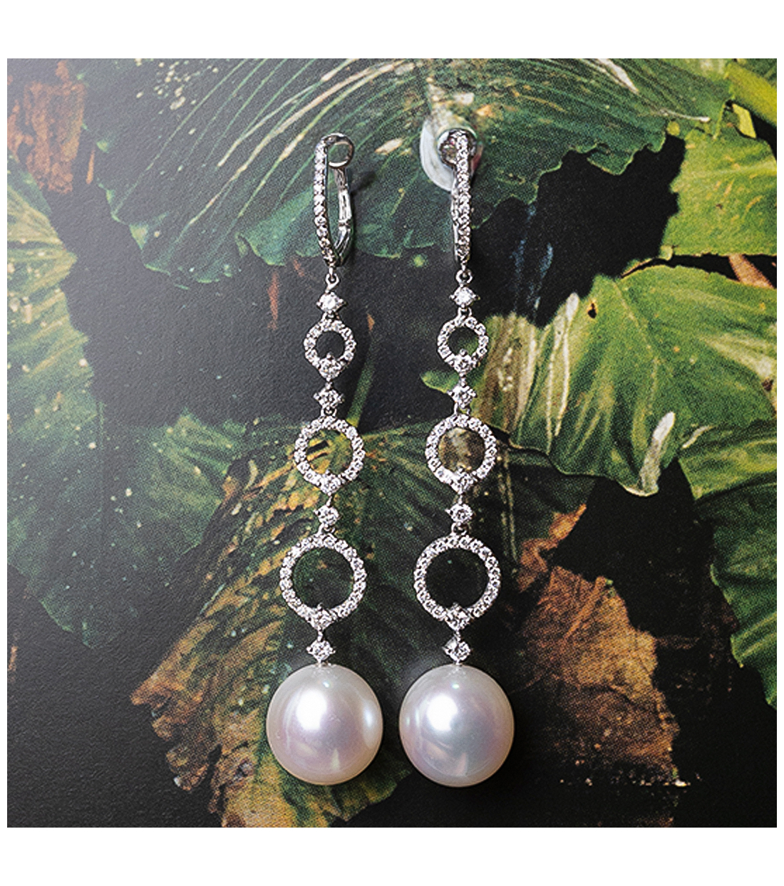 Pendientes largos "Carla" de diamantes y perlas. La encarnación de la elegancia y la sofisticación.