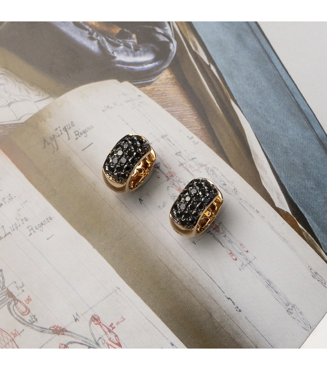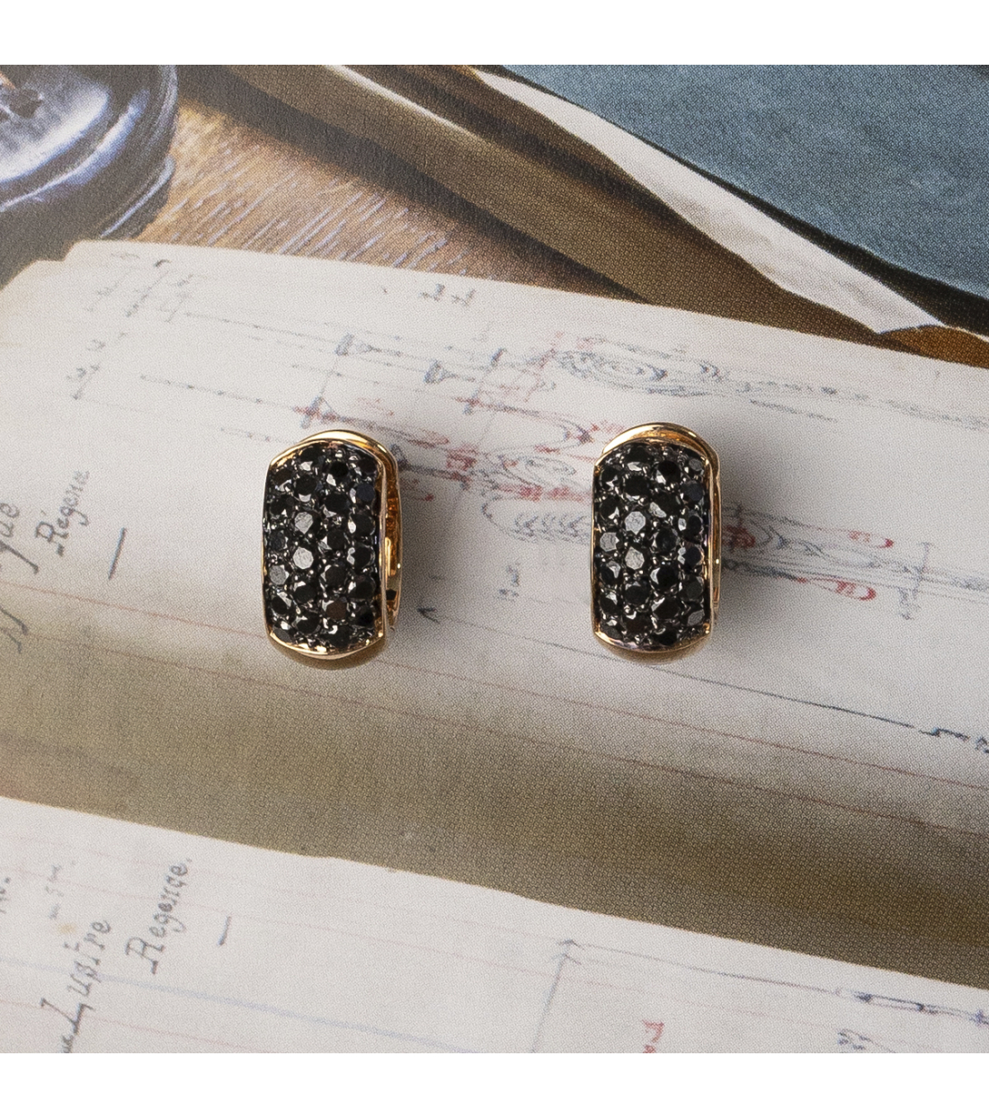 Pendientes aro "Rafaela" de oro rosa con diamantes black. Su diseño atemporal los hace perfectos para cualquier edad.