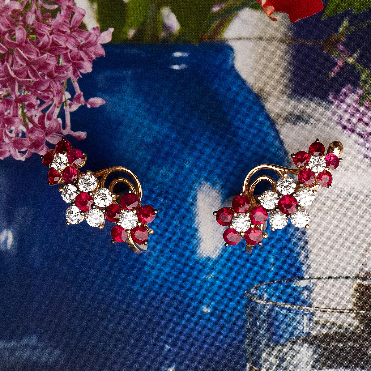PENDIENTES "ARIA" DE ORO DIAMANTES Y RUBÍES