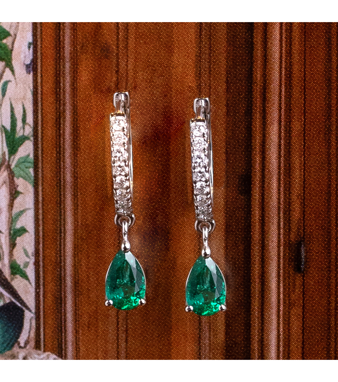 PENDIENTES "OLAYA" DE ORO BLANCO, DIAMANTES Y ESMERALDAS