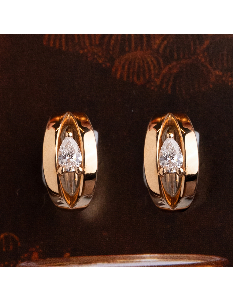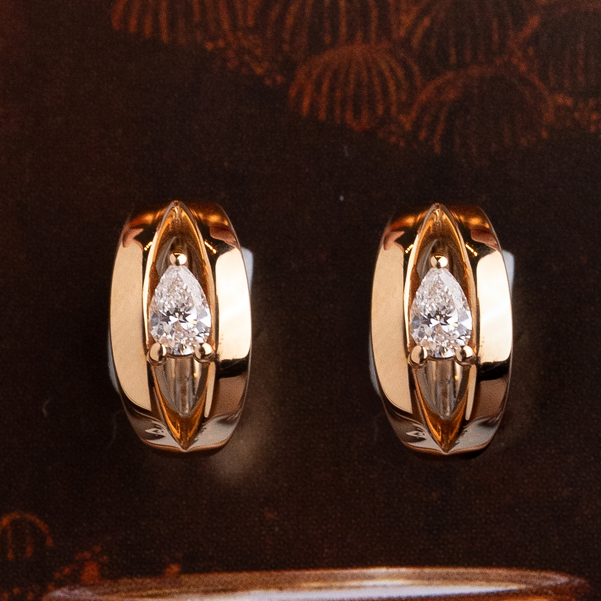 Criollas "Aura" de oro rosa de 18Kt con diamantes talla pera 0,28Cts. Un diseño exclusivo que fusiona modernidad y lujo, ideal para un regalo inolvidable.