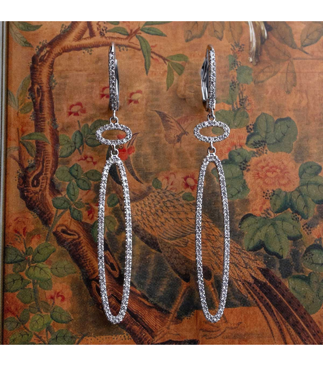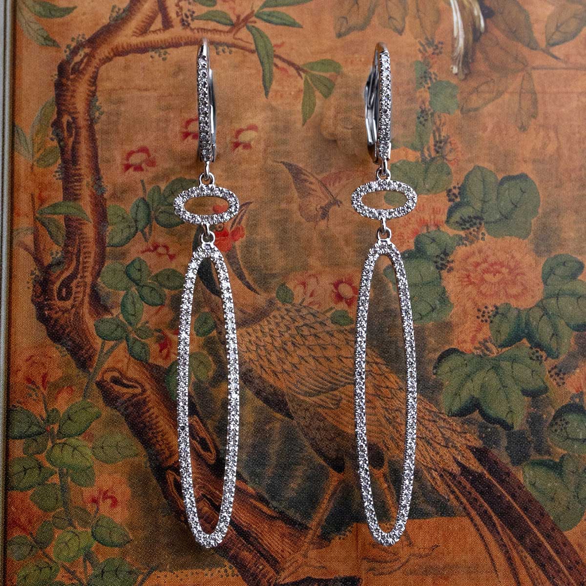 Pendientes "Amelie" de oro blanco de 1ª Ley de 18 Kt. con diamantes talla brillante 0,36 cts. Perfectos para ocasiones formales, galas o eventos donde la elegancia no admite concesiones.