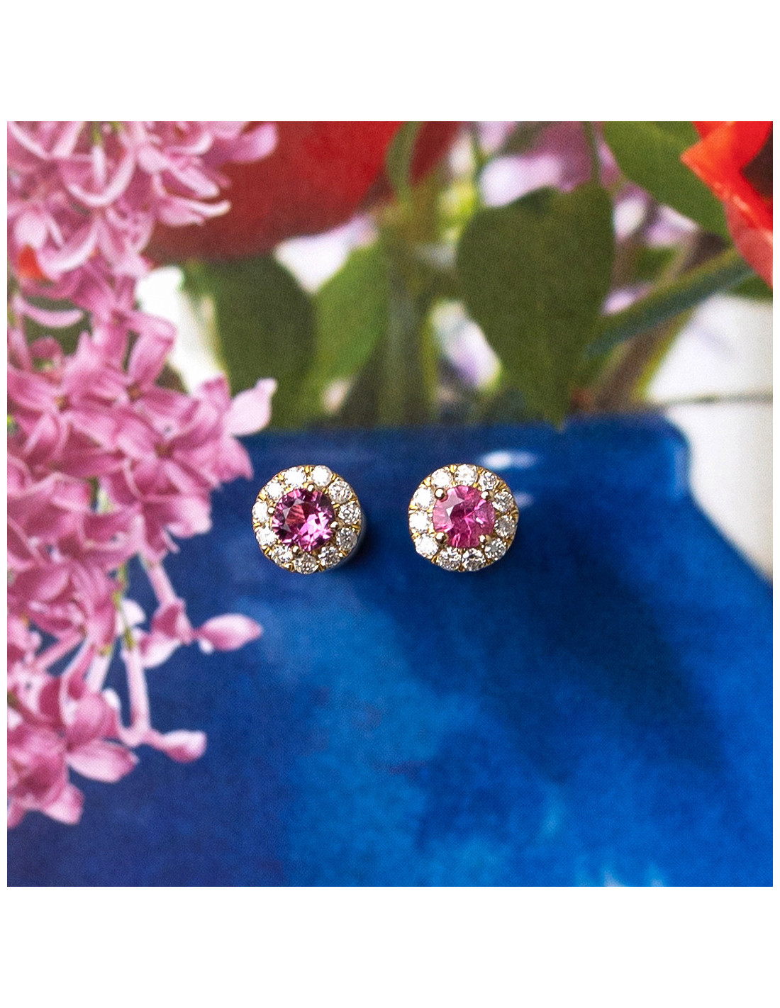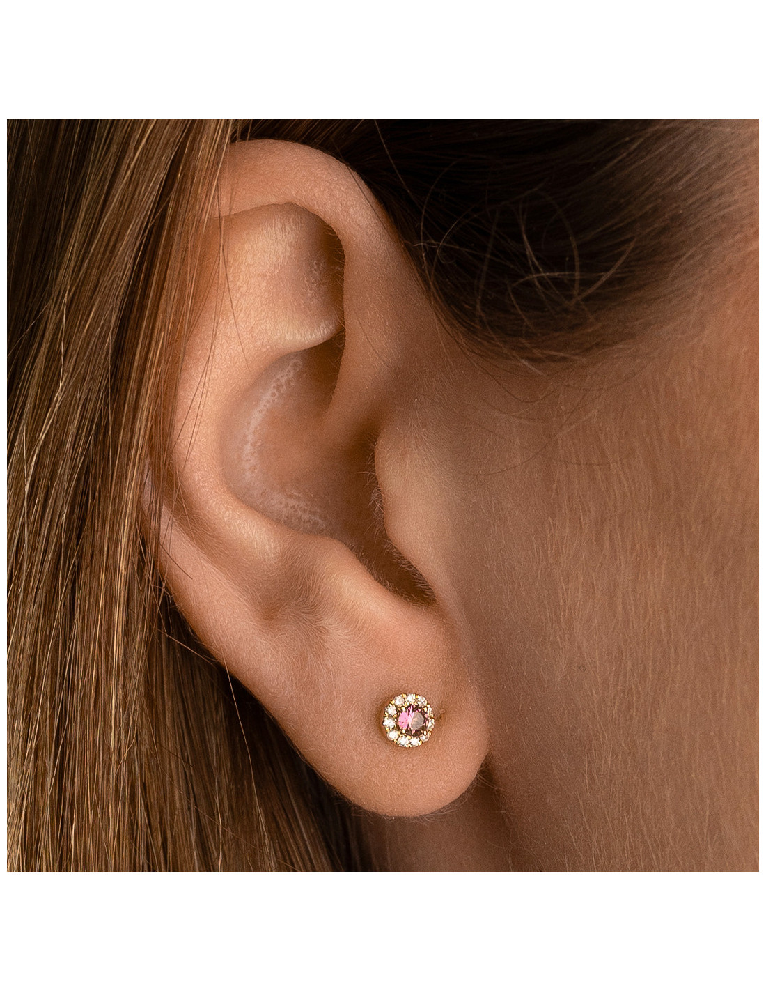 PENDIENTES "VIOLETA", DE ORO CON RUBÍ Y BISEL DE DIAMANTES