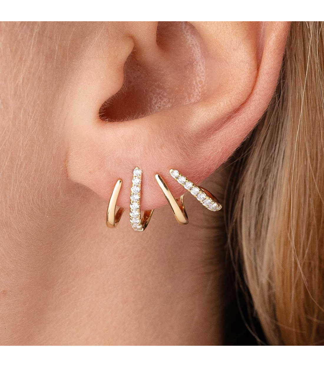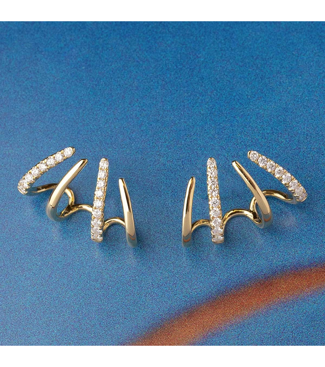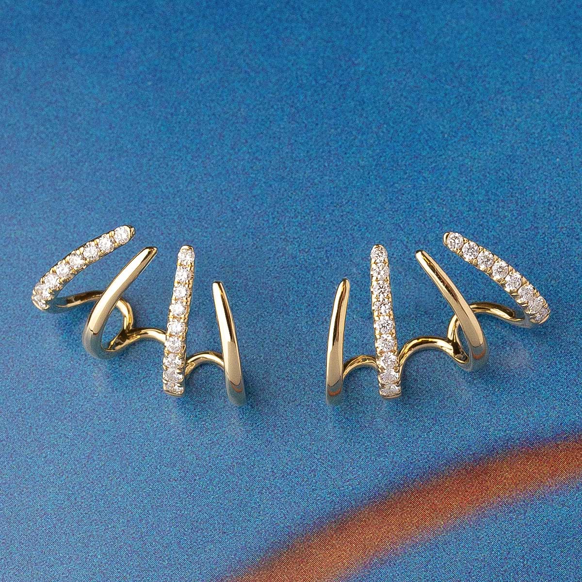 Pendientes trepadores "Cora" de oro amarillo de 1ª Ley de 18Kt. con diamantes talla brillante 0,48 cts. Diseño moderno y lujoso, ideal para mujeres chic o como regalo exclusivo.
