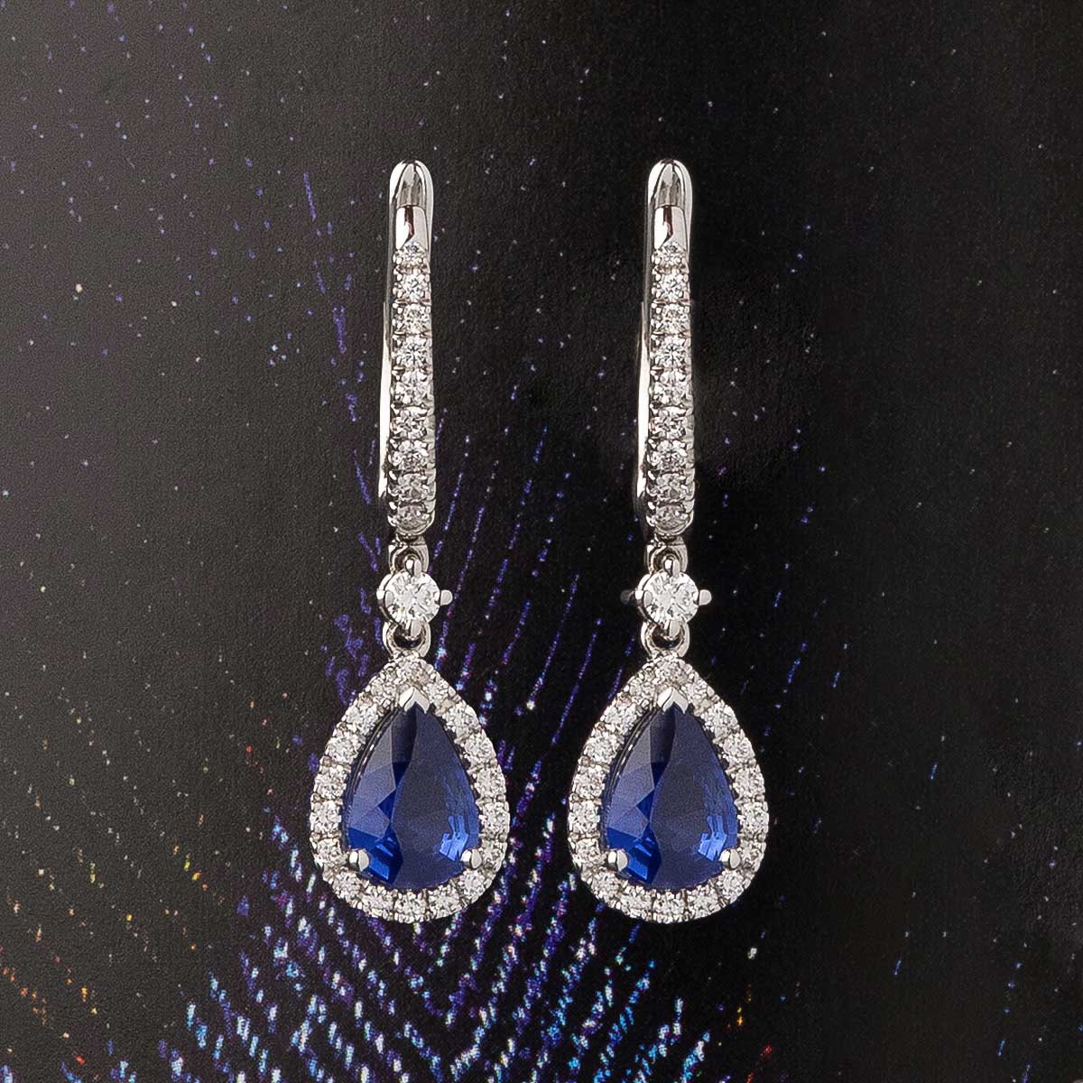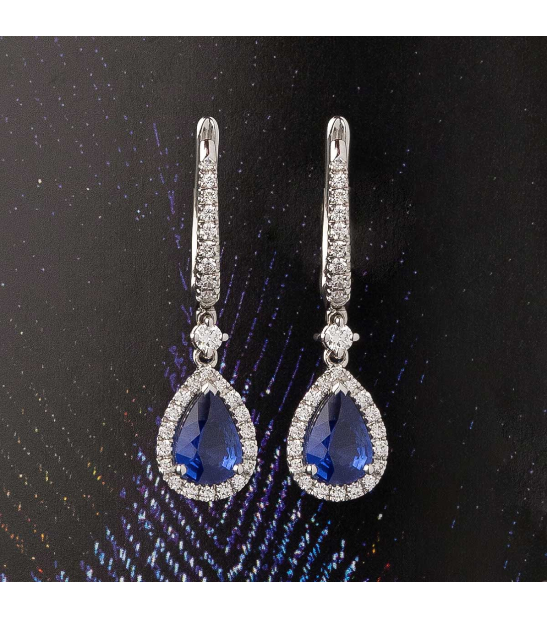 Pendientes "Estrella" de oro blanco de 1ª Ley de 18Kt. con diamantes talla brillante 0,42 cts. y zafiros talla gota 1,41 cts. Son mucho más que una joya, son una expresión de amor y compromiso.